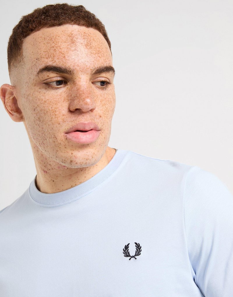 Bring Premium-Vibes in deinen Style mit dem Fred Perry Core T-Shirt für Herren. Dieses Ringer-T-Shirt in der Farbe Light Smoke besitzt einen klassischen Rundhalskragen und kurze Ärmel. Es besteht aus weichem Baumwolljersey und sorgt für erstklassigen Komfort im Alltag. Auf der Brust befindet sich das ikonische Lorbeerkranz-Logo. Waschmaschinengeeignet. Unser Model ist 1,83 m groß, hat einen Brustumfang von 97 cm und trägt Größe M.