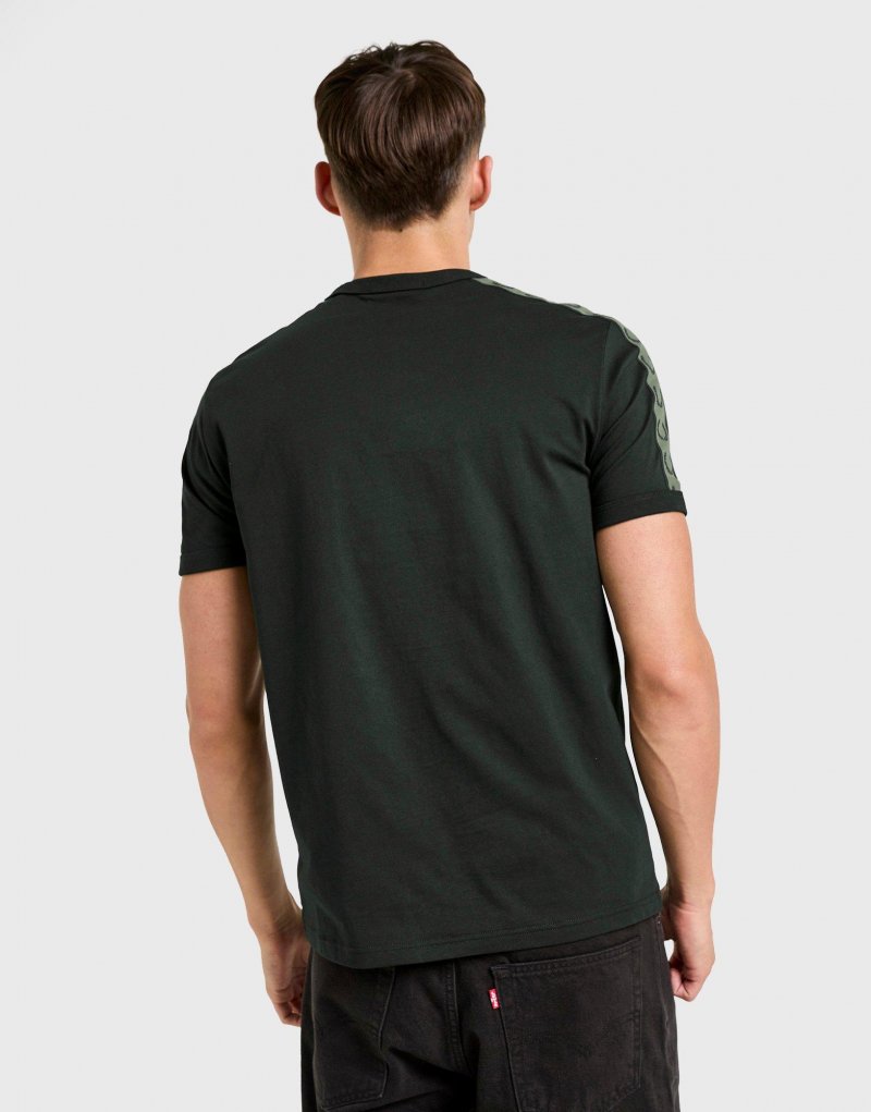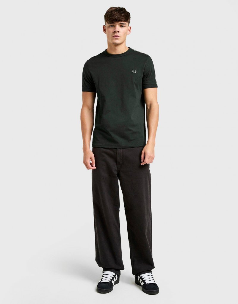 Bring Premium-Energie in deine Garderobe mit dem Fred Perry Tape Ringer T-Shirt für Herren. Dieses JD-exklusive Oberteil in Dunkelgrün ist aus hochwertigem Baumwollgewebe gefertigt und bietet erstklassigen Komfort im Alltag. Zudem verfügt es über einen Rundhalsausschnitt, kurze Ärmel mit Ringer-Besätzen und Logo-Tapes an den Ärmeln. Abgerundet wird das Ganze durch das ikonische Lorbeerkranz-Logo auf der Brust. Waschmaschinengeeignet. Unser Model ist 1,88 m groß, hat einen Brustumfang von 94 cm und trägt Größe M.