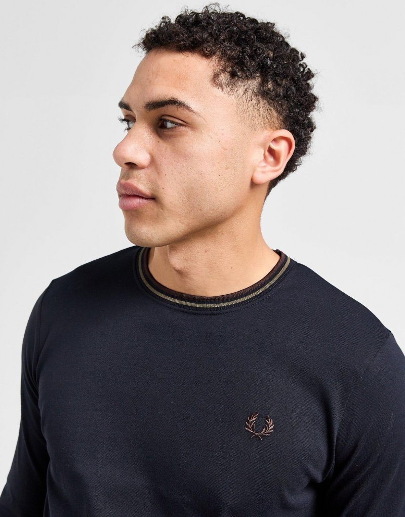 Upgrade deinen Winter-Look mit dem Fred Perry Twin Tip Long Sleeve T-Shirt für Herren. Dieses Oberteil ist in der Farbe Navy gehalten und besteht aus schwerem Baumwolljersey, um dir maximalen Komfort und Wärme zu bieten. Außerden verfügt es über gerippte Bündchen und einen Kragen mit Bestz in Laurel Wreath Green. Abgerundet wird das Ganze durch das klassische Logo auf der Brust. Waschmaschinengeeignet. Unser Model ist 1,88 m groß, hat einen Brustumfang von 97 cm und trägt Größe M.