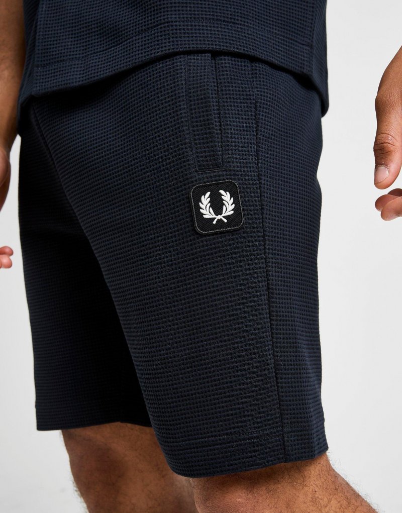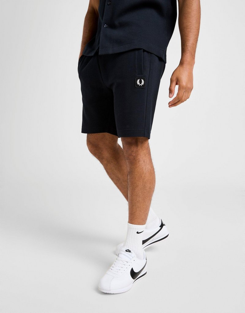 Erhöhen Sie Ihr Level. Starten Sie in die neue Saison mit diesen Herren-Waffle-Shorts von Fred Perry. Die Shorts im Regular Fit in Marineblau bestehen aus hochwertigem Baumwollstoff mit Waffelstruktur. Sie verfügen über einen elastischen Bund für mehr Komfort und Seitentaschen für Ihre wichtigsten Utensilien. Abgerundet wird das Design durch das ikonische Lorbeerkranz-Logo am Bein. Maschinenwaschbar. | Unser Model ist 1,85 m groß und trägt Größe M.