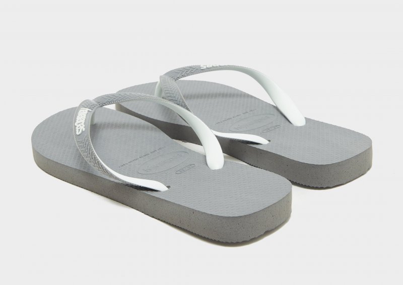 Halten Sie es am Pool mit diesen Top Mix Flip Flops für Herren von Havaianas kühl. Diese Flip-Flops in grauer Farbe sind aus glattem, strapazierfähigem Gummi mit einem PVC-Riemen für dauerhaften Tragekomfort geschnitten. Sie verfügen über ein weiches, schwammiges Fußbett für ein reibungsloses Laufgefühl und eine strukturierte Außensohle für Traktion. Abgerundet mit dem charakteristischen Havaianas-Branding.