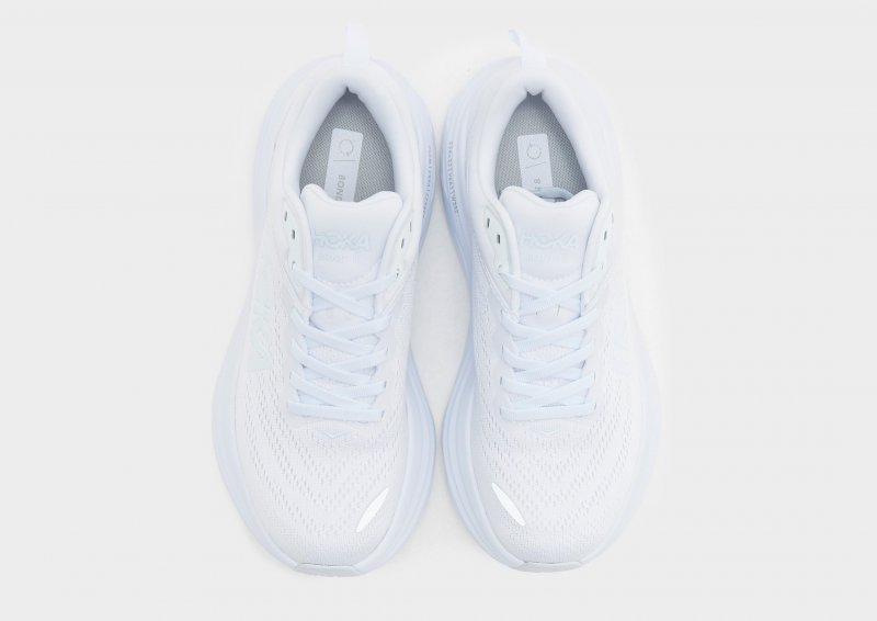 Mit den Bondi 8 Damen-Sneakern von HOKA läufst du auf Hochtouren. Diese weißen Laufschuhe besitzen ein atmungsaktives Mesh-Obermaterial für luftigen Tragekomfort. Außerdem verfügen sie über einen farblich abgestimmten Schnürverschluss und einen gepolsterten Knöchelkragen für sicheren Halt, während die Ortholite-Einlegesohle zusätzliche Stabilität gewährleistet. Eine Schaumstoff-Zwischensohle bietet reaktionsfreudige Dämpfung und eine robuste Gummi-Außensohle sorgt für sichere Traktion auf dem Untergrund. Das klassische Logo von HOKA verleiht dem Design noch den letzten Feinschliff.