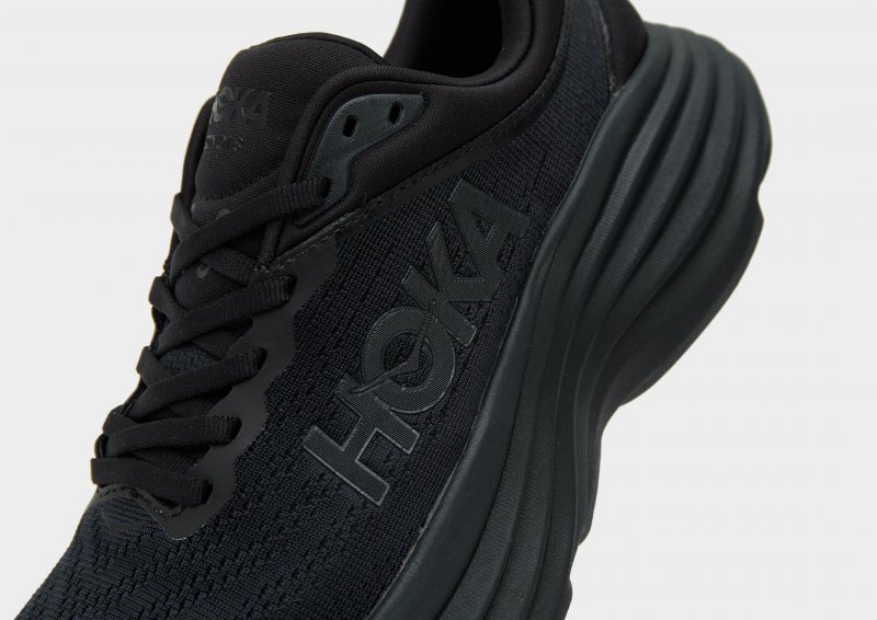 Mit den HOKA Bondi 8 Sneakern für Damen gehst du jede Extrameile. Diese schwarzen Laufschuhe besitzen ein atmungsaktives, technisches Mesh-Obermaterial mit synthetischen Elementen für erstklassigen Tragekomfort. Zudem verfügen sie über einen farblich abgestimmten Schnürverschluss mit weicher Polsterung an Kragen und Zunge, um sicheren Halt zu gewährleisten, während einer OrthoLite-Hybrid-Einlegesohle für zusätzliche Dämpfung sorgt. Die ultraleichten Schaumstoff-Zwischensohle bietet ein reaktionsfreudiges Laufgefühl und die robuste Gummi-Außensohle stellt die Traktion sicher. Das klassische HOKA-Logo verleiht dem Design einen runden Abschluss.