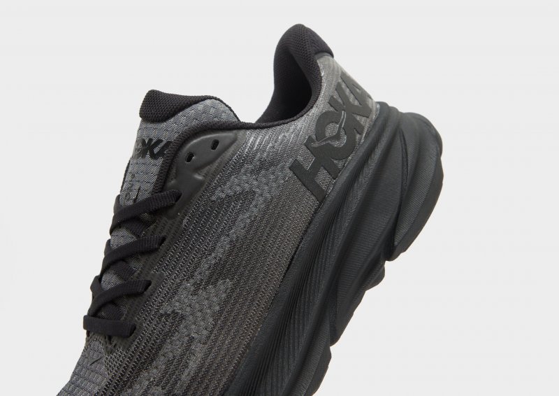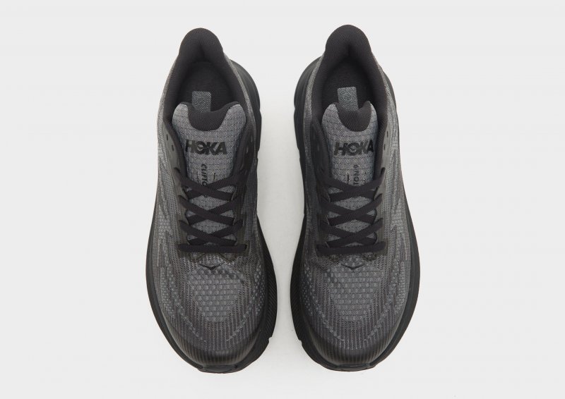 Bewegen Sie sich mit diesen Clifton 9-Turnschuhen für Junioren von HOKA. Diese Schuhe in der Farbe Carbon haben ein atmungsaktives Mesh-Obermaterial, das Ihre Füße kühl hält. Sie verfügen über einen Schnürverschluss, der Sie sicher festhält, einen gepolsterten Knöchelkragen für ein angenehmes Tragegefühl und eine reaktionsfreudige Schaumstoff-Zwischensohle für ein sanftes Laufgefühl. Mit einer Gummi-Außensohle für Grip sind sie durchgehend mit dem HOKA-Branding versehen.