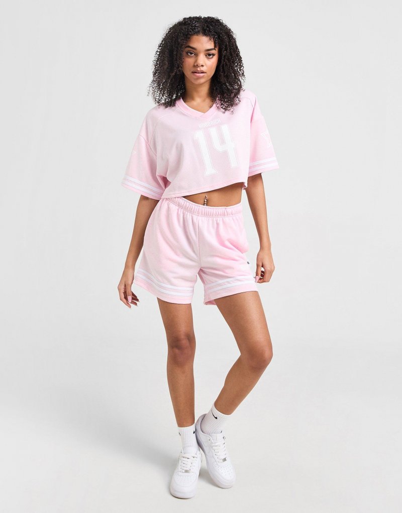 Verleihen Sie Ihren Basics mit diesem Boyfriend-Trikot für Damen von Hoodrich einen College-Touch. Dieses T-Shirt in Pink ist exklusiv bei JD erhältlich und besteht aus leichtem, luftigem Mesh für kühlen Tragekomfort. Es ist von klassischen American-Football-Trikots inspiriert und verfügt über einen gerippten V-Ausschnitt und überschnittene kurze Ärmel. Es hat einen eleganten, kurzen Saum und ist vorne und hinten mit dem Hoodrich-Branding versehen. Maschinenwaschbar. | Unser Model ist 1,73 m groß und trägt Größe S.