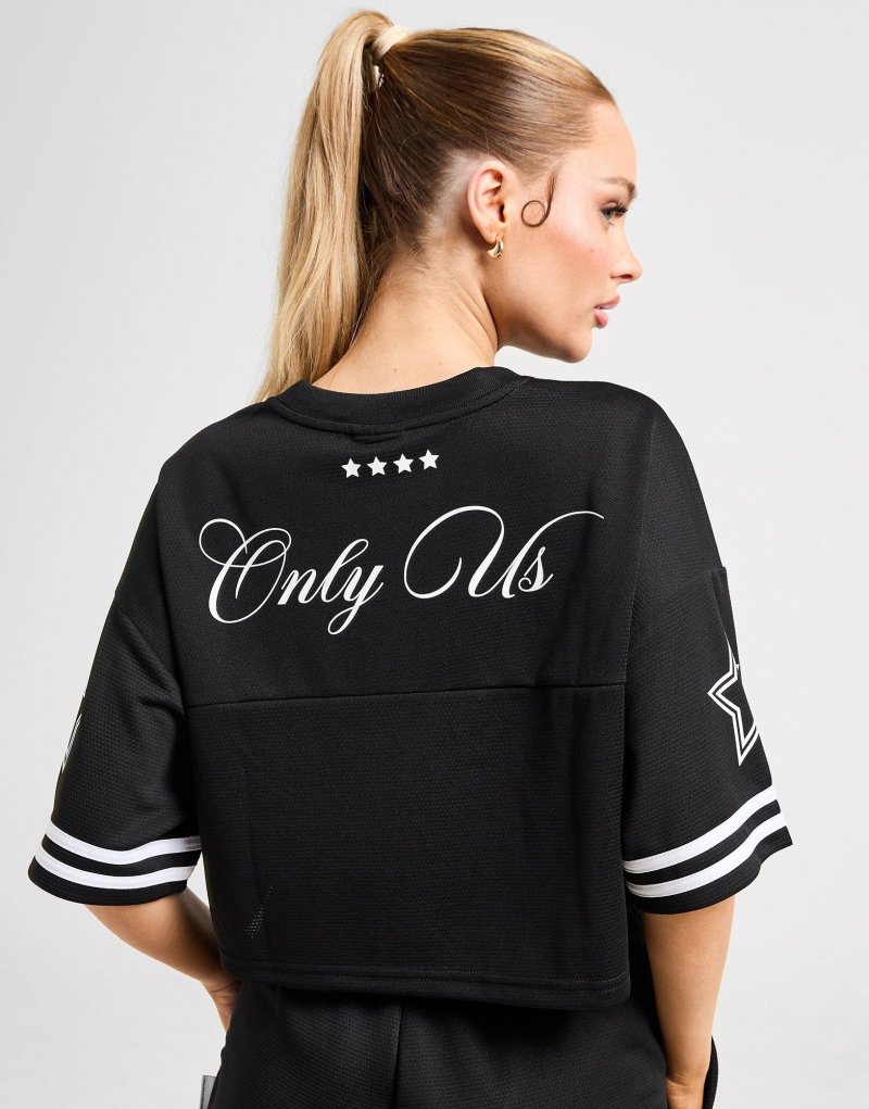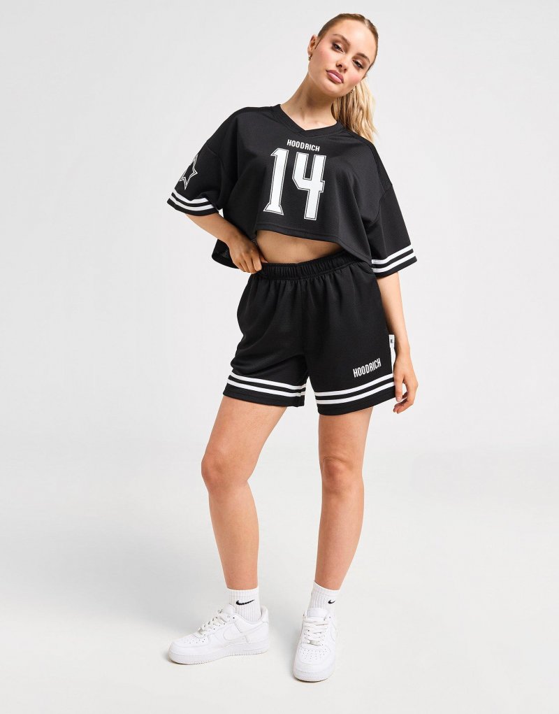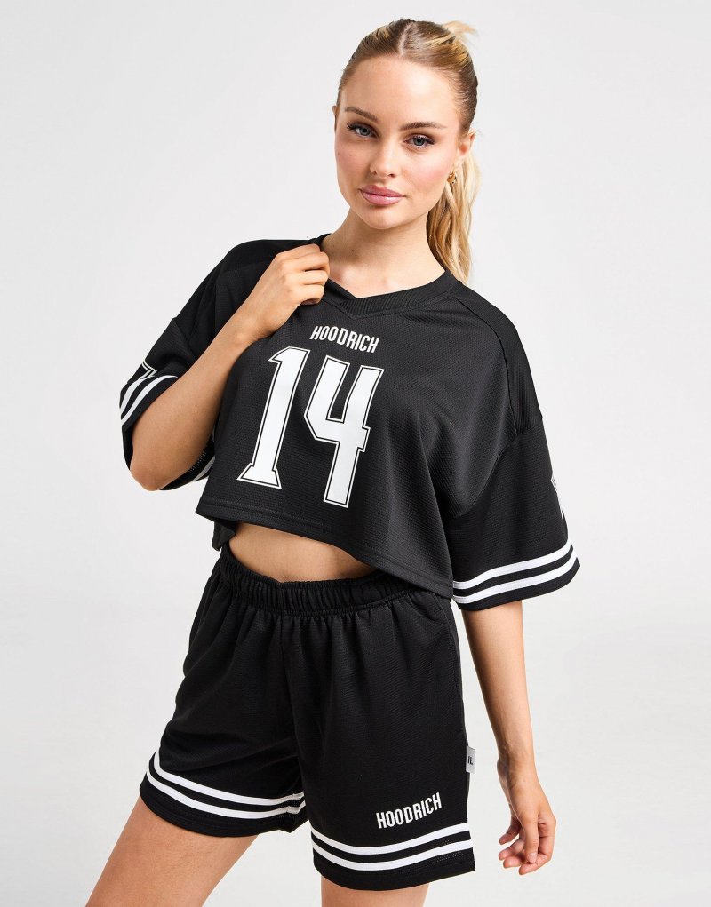 Repräsentiere einen vom American Football inspirierten Stil mit diesem Boyfriend-Trikot für Damen von Hoodrich. Dieses JD-exklusive T-Shirt in Schwarz ist aus leichtem, atmungsaktivem Mesh gefertigt, um alles kühl zu halten. Es verfügt über einen gerippten V-Ausschnitt und kurze Ärmel für einen klassischen Schnitt, mit einem verkürzten Saum und überschnittenen Schultern für bequemes Tragen. Abgerundet mit dem Hoodrich-Branding auf Brust und Rücken. Maschinenwaschbar. | Unser Model ist 1,73 m groß und trägt Größe S.