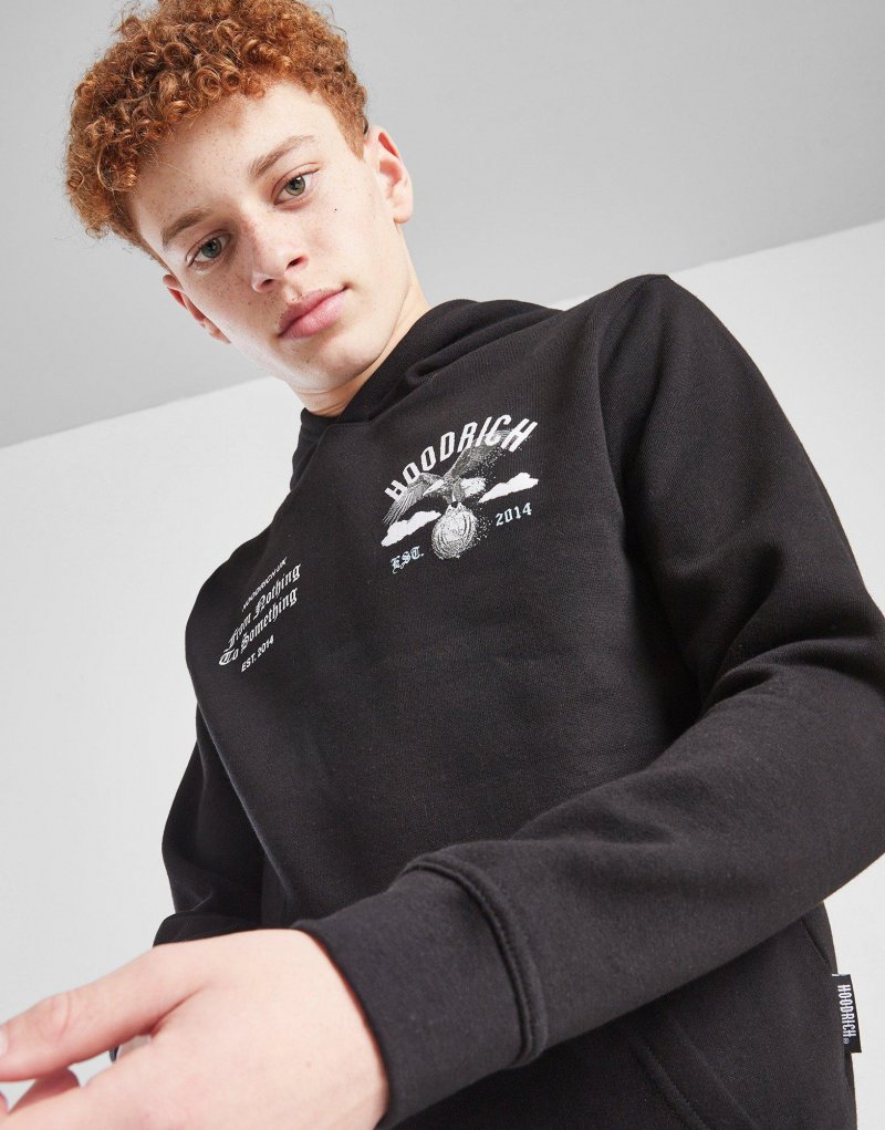 Bringen Sie mit diesem Eagle Hoodie für Junioren von Hoodrich frischen Wind in Ihr Lagen-Outfit. Dieser JD-exklusive Hoodie in Schwarz und Blau ist aus weichem Fleecestoff gefertigt und bietet Komfort für jeden Tag. Er verfügt über eine Kapuze für individuellen Schutz, gerippte Säume für Formbeständigkeit und eine Kängurutasche für einfaches Verstauen. Abgerundet durch das grafische Hoodrich-Branding auf Brust und Rücken. Maschinenwaschbar.