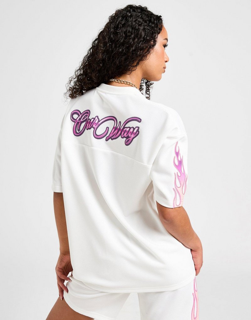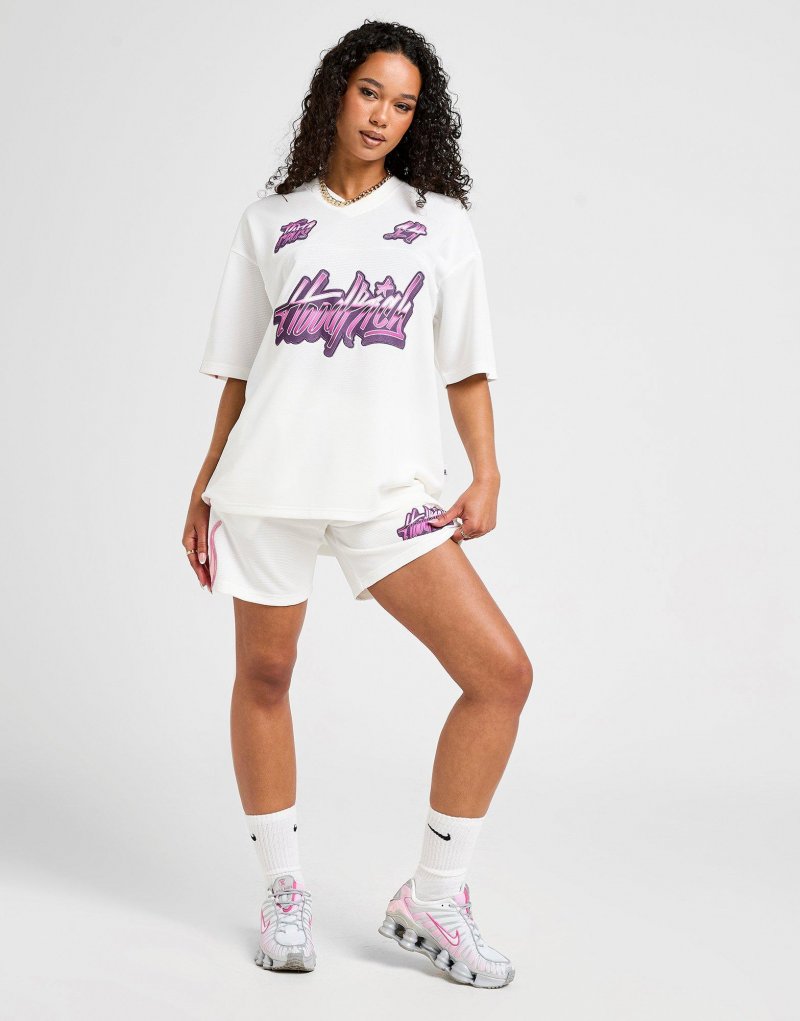 Lassen Sie sich vom klassischen Sportstil inspirieren – mit diesem Erupt Poly Jersey für Damen von Hoodrich. Das locker geschnittene Shirt in Off-White besteht aus leichtem, luftigem Mesh für langanhaltenden Tragekomfort. Es hat einen klassischen V-Ausschnitt und kurze Ärmel, inspiriert von legendären Sporttrikots, und ist durchgehend mit dem markanten Hoodrich-Logo versehen. Maschinenwaschbar. | Unser Model ist 1,70 m groß und trägt Größe S.