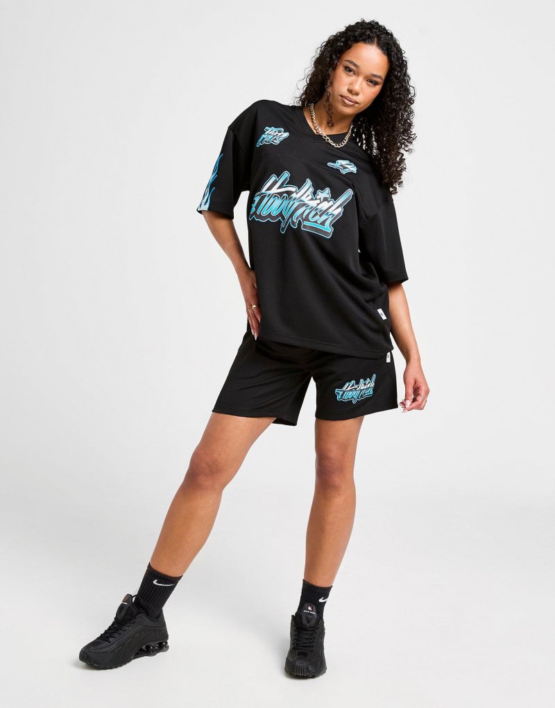 Exklusiv bei JD. Mit diesem Damen-Erupt-Poly-Trikot von Hoodrich setzt du einen mutigen Look in Szene. Das locker geschnittene Trikot in Schwarz besteht aus glattem, luftigem Polyestergewebe für langanhaltenden Tragekomfort. Es orientiert sich an klassischen Sport-Styles und hat einen gerippten V-Kragen, kurze Ärmel und ein markantes Hoodrich-Logo. Maschinenwaschbar. | Unser Model ist 1,70 m groß und trägt Größe S.