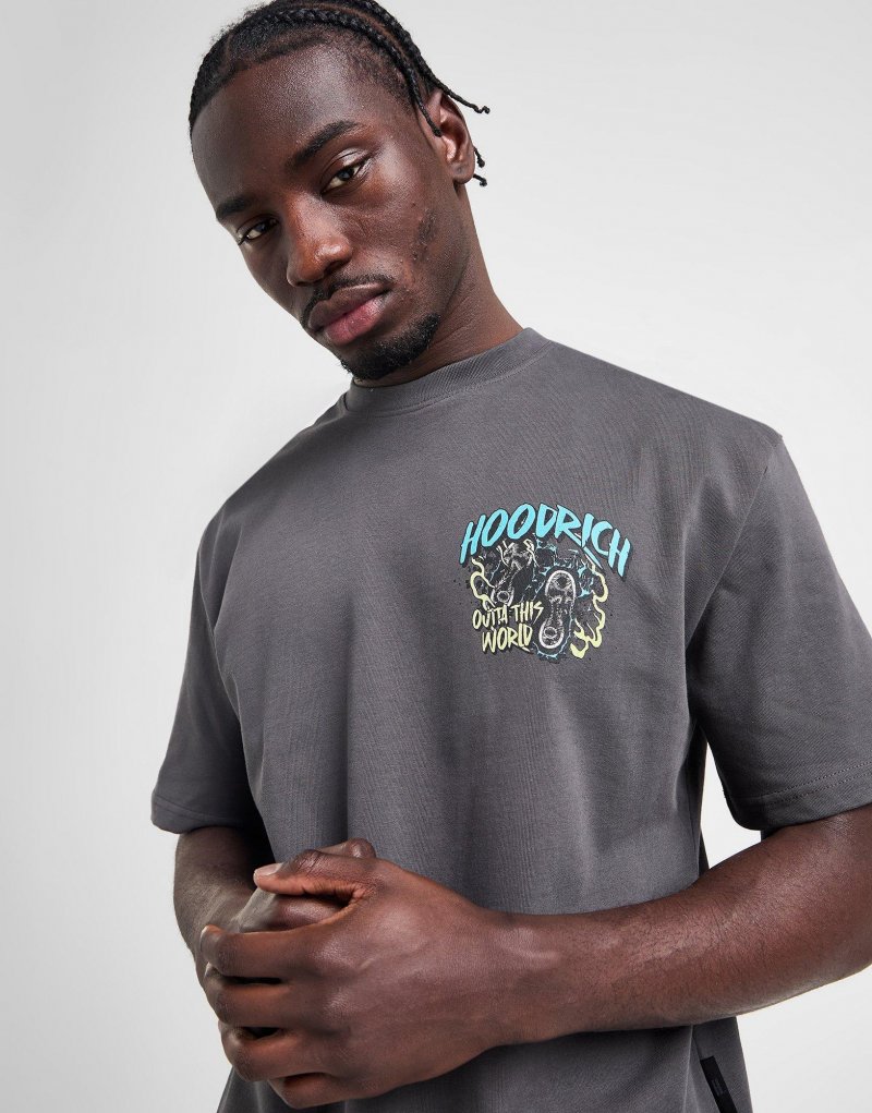 Erobern Sie die Straße mit diesem Herren-T-Shirt Footprint von Hoodrich. Dieses JD-exklusive T-Shirt in Grau besteht aus weicher, atmungsaktiver Baumwolle für höchsten Tragekomfort. Es hat einen gerippten Rundhalsausschnitt und kurze Ärmel für bequemes Tragen und ist mit dem Hoodrich-Grafik-Branding auf Brust und Rücken versehen. Maschinenwaschbar. | Unser Model ist 1,85 m groß, hat einen Brustumfang von 91 cm und trägt Größe M.