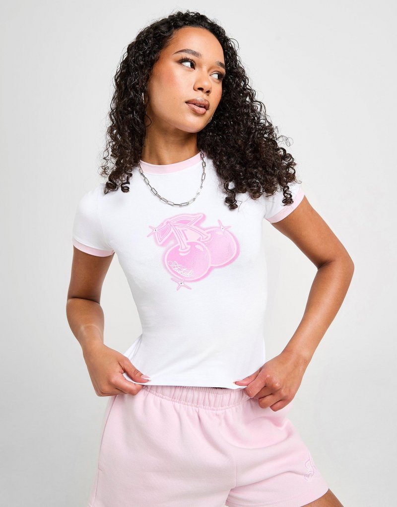 Peppen Sie Ihre Alltagsgarderobe mit diesem Damen-T-Shirt „Fuse Cherry Diamante“ von Hoodrich auf. In Weiß mit rosa Besätzen ist dieses Slim-Fit-T-Shirt aus weicher, leichter Baumwolle für höchsten Tragekomfort gefertigt. Der klassische Rundhalsausschnitt und die kurzen Ärmel sorgen für ein angenehmes Tragegefühl. Abgerundet wird das T-Shirt durch Strass-Details und das Hoodrich-Logo. Maschinenwaschbar. | Unser Model ist 1,70 m groß und trägt Größe S.