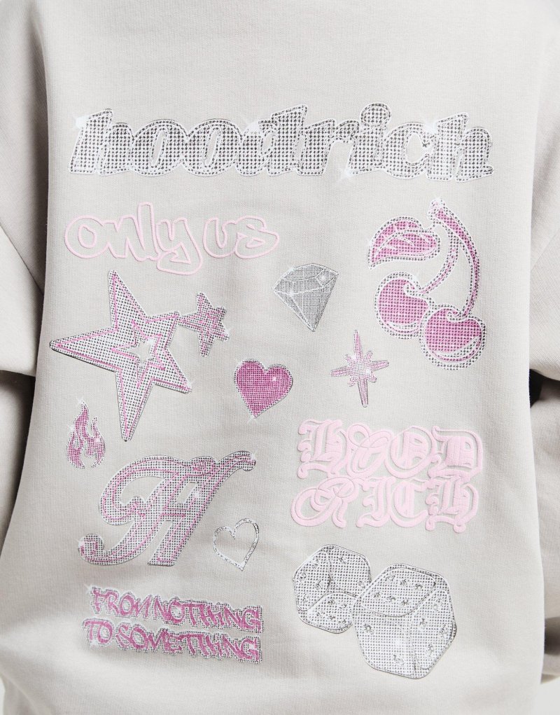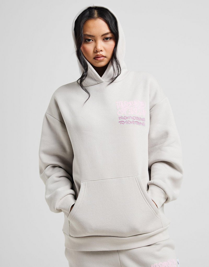 Exklusiv bei JD. Verleihen Sie Ihrem Freizeitstil etwas Glanz mit diesem Jewel Overhead Boyfriend Hoodie für Damen von Hoodrich. Dieser übergroße Pullover in der Farbe Hellgrau besteht aus einer kuscheligen Baumwollmischung, die außen glatt und innen weich gebürstet ist. Er verfügt über überschnittene Schultern, gerippte Säume und eine Kängurutasche. Abgerundet mit Puff- und Siebdruck-Hoodrich-Branding sowie Strassdetails auf der Rückseite. Maschinenwaschbar. | Unser Model ist 1,70 m groß und trägt Größe S.
