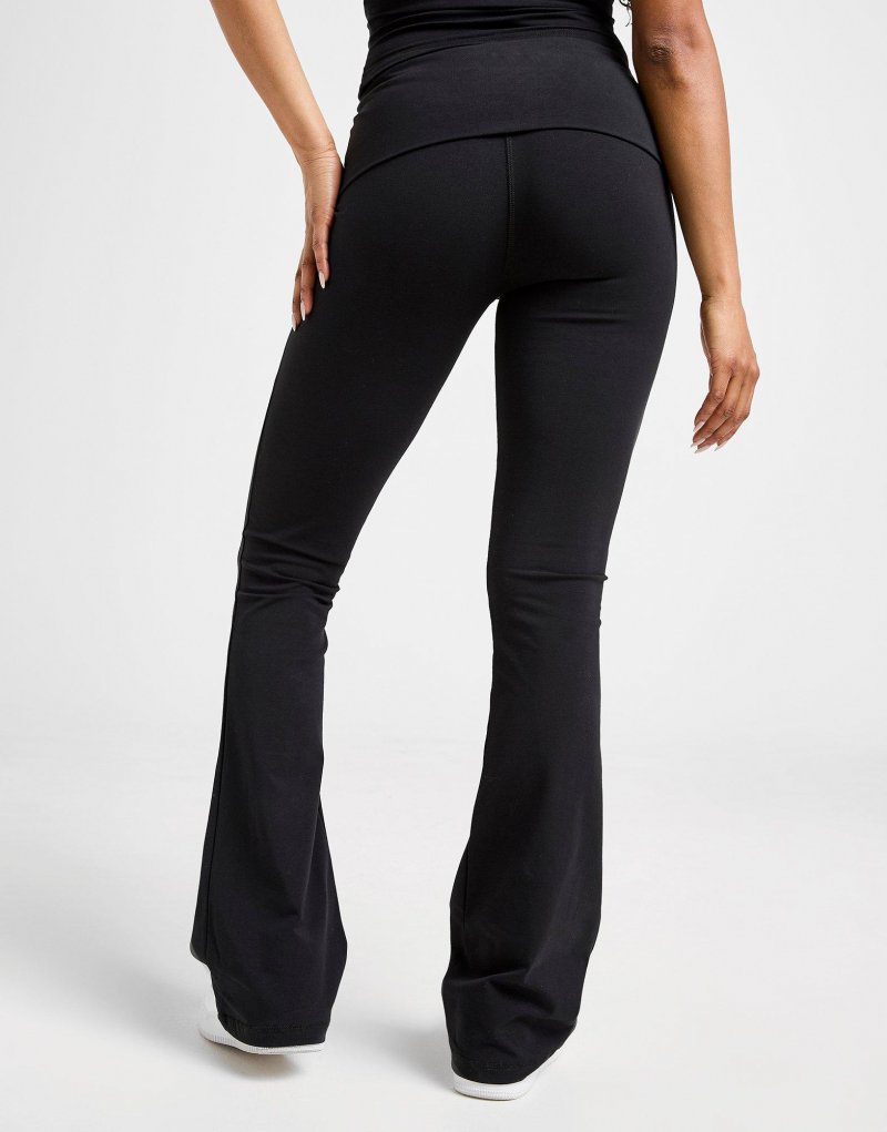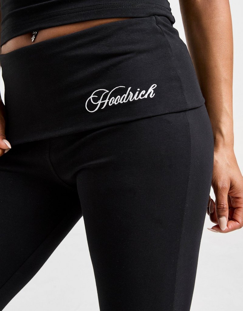 Eine moderne Interpretation des Retro-Stils: Die Poise Flare Leggings für Damen von Hoodrich sind ein echter Hingucker. Die schwarze Mid-Rise-Leggings mit umklappbarem Gummibund sorgt für perfekten Sitz, während die ausgestellten Säume für einen Vintage-Look sorgen. Sie besteht aus weichem, dehnbarem Single-Baumwolljersey und ist mit dem kontrastierenden Hoodrich-Schriftzug in Kettenstich an der Hüfte versehen. Maschinenwaschbar. | Unser Model ist 1,70 m groß und trägt Größe S.