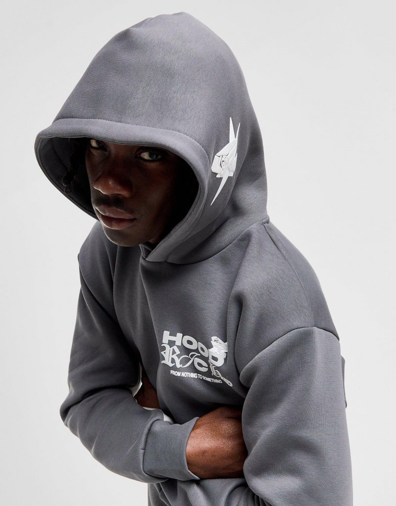 Bring Abwechslung in deinen Style mit diesem Rec Herren-Hoodie von Hoodrich. Der Regular-Fit Pullover ist in Grau gehalten und mit helleren Paneelen versehen. Er verfügt über eine feste Kapuze, eine Kängurutasche und gerippte Bündchen. Außerdem besteht der Hoodie aus einem mittelschweren Baumwoll-Polyknit-Fleece, um absoluten Tragekomfort zu gewährleisten. Abgerundet wird das Design durch ein Rosenmotiv auf der Kapuze und das Hoodrich-Logo auf der Brust. Waschmaschinengeeignet. Unser Model ist 1,83 m groß, hat einen Brustumfang von 89 cm und trägt Größe M.