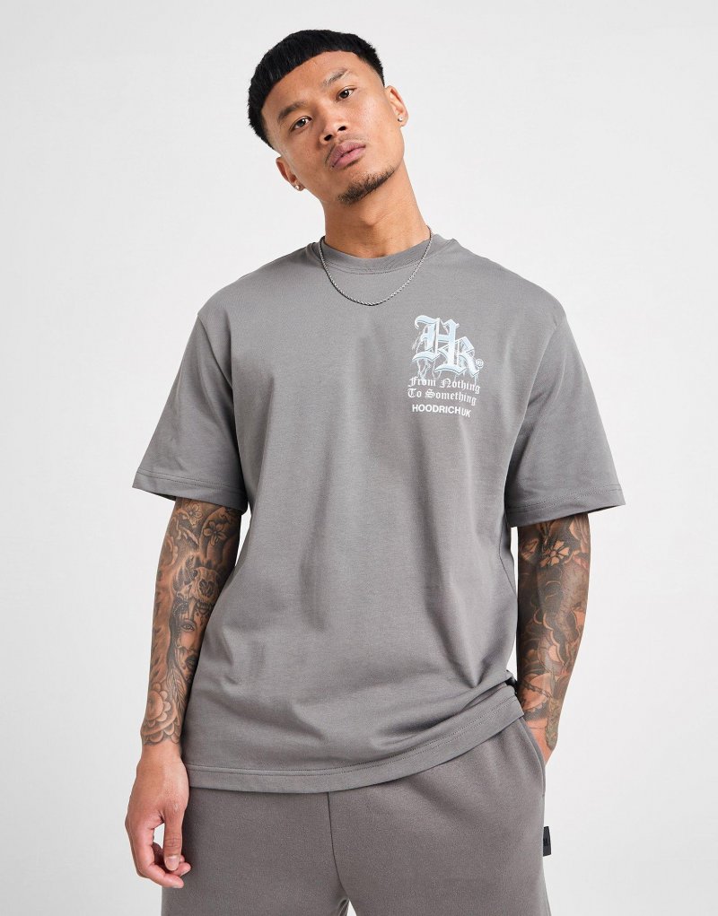 Mit diesem Herren-T-Shirt von Hoodrich zeigst du Streetstyle pur. In der Farbe Helles Rauchgrau ist das T-Shirt aus weicher Baumwolle gefertigt und sorgt für langanhaltenden Tragekomfort. Der gerippte Rundhalsausschnitt und die kurzen Ärmel sorgen für bequemes Tragen. Das Hoodrich-Logo auf Brust und Rücken rundet das T-Shirt ab. Maschinenwaschbar. | Unser Model ist 1,83 m groß, hat einen Brustumfang von 102 cm und trägt Größe S.