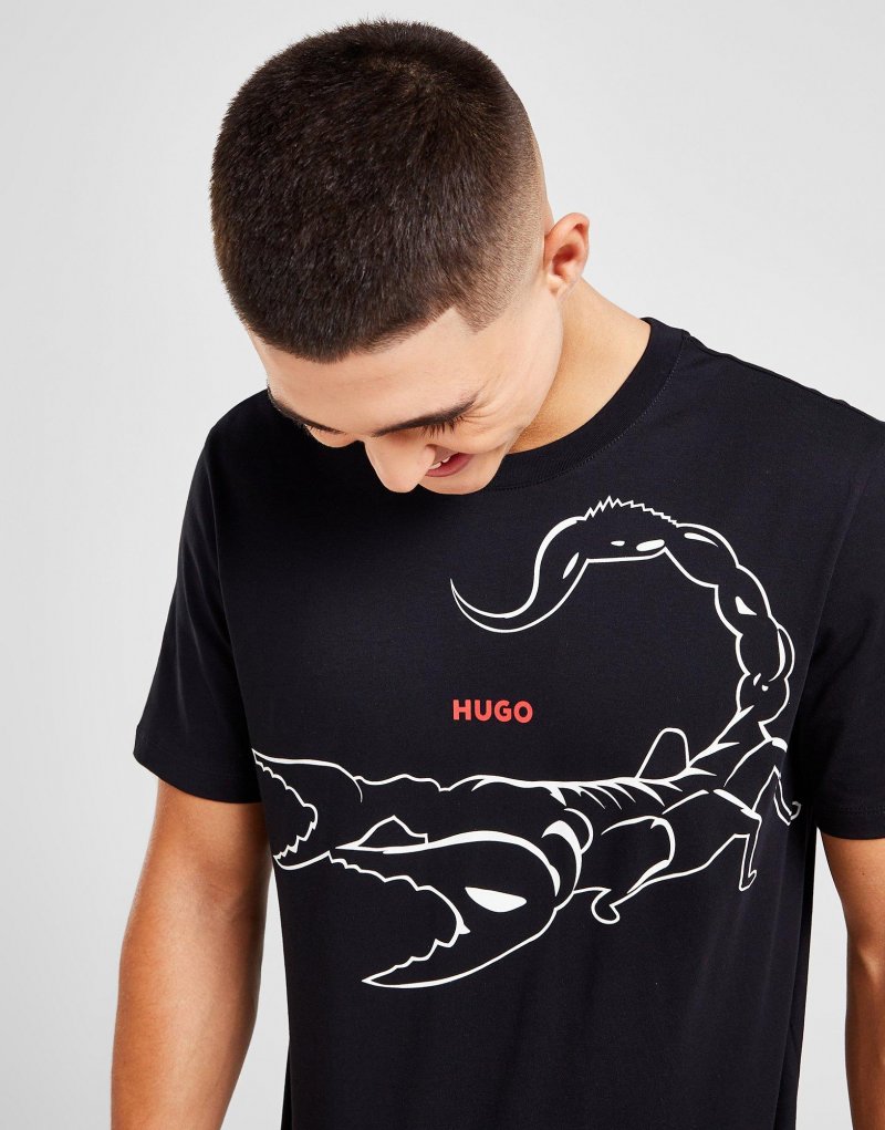 Upgrade deine Alltagsgarderobe mit dem HUGO Darp Scorpion T-Shirt für Herren. Dieses Standard-Fit Oberteil in Schwarz besteht aus weicher, leichter Baumwolle und erstklassigen maximalen Tragekomfort. Es verfügt über einen gerippten Rundhalskragen und kurze Ärmel für einen zeitlosen Look, während ein auffälliges Skorpion-Motiv und das klassische HUGO-Logo dem Design einen runden Abschluss verleihen. Waschmaschinengeeignet. Unser Model ist 1,82 m groß, hat einen Brustumfang von 97 cm und trägt Größe M.