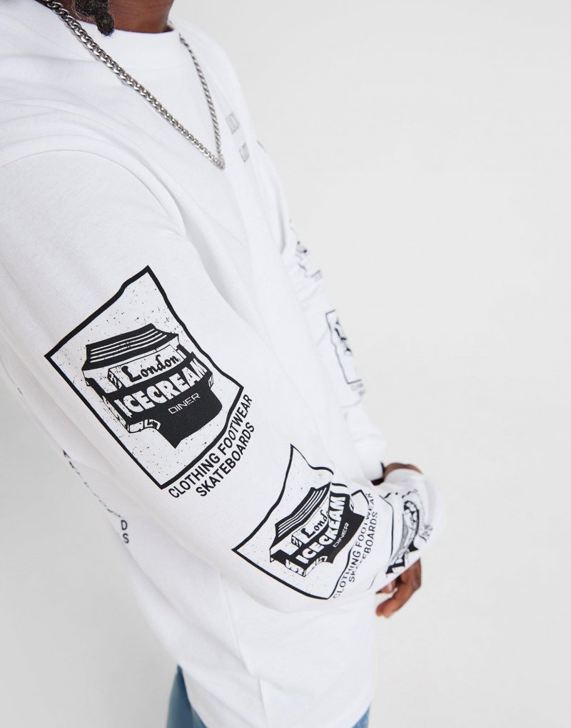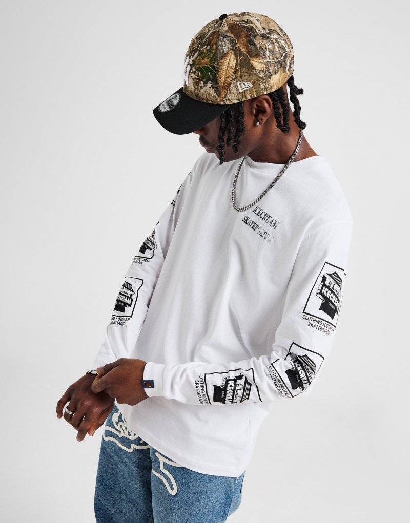 Zeit für einen neuen Alltags-Look mit dem ICECREAM World Tour Long Sleeve T-Shirt für Herren. Dieses Relaxed-Fit Oberteil in Weiß besteht aus weicher Baumwolle und bietet absoluten Tragekomfort. Es verfügt über einen gerippten Rundhalsausschnitt und kurze Ärmel für einen zeitlosen Look, während ein auffälliges World Tour-Motiv von ICECREAM auf der Rückseite platziert ist. Das klassische Logo auf den Ärmeln und der Brust rundet das Design ab. Waschmaschinengeeignet. Unser Model ist 1,83 m groß, hat einen Brustumfang von 89 cm und trägt Größe M.