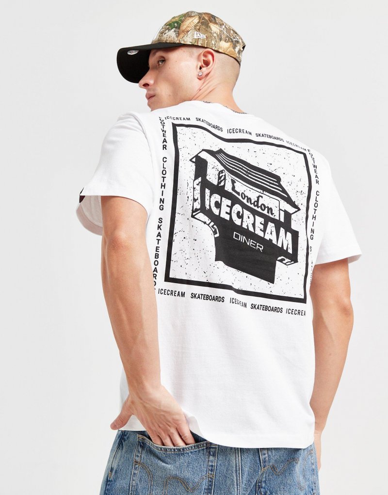 Bring frische Energie in deinen Alltags-Look mit dem ICECREAM World Tour T-Shirt für Herren. Dieses Standard-Fit T-Shirt in Weiß besteht aus weichem Baumwollstoff und sorgt für absoluten Komfort. Es verfügt über kurze Ärmel, einen geripptem Rundhalsausschnitt und ist mit einem ICECREAM-Logo auf der Brust sowie einem Motiv auf der Rückseite versehen. Waschmaschinengeeignet. Unser Model ist 1,83 m groß, hat einen Brustumfang von 99 cm und trägt Größe M.
