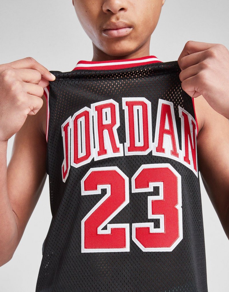Mit dem Jordan #23 Mesh Tanktop für Kinder gehst du auf den Platz wie ein Champion. Dieses schwarze Oberteil besteht aus leichtem Poly-Mesh und sorgt für ein kühles, atmungsaktives Tragegefühl. Außerdem verfügt es über ein ärmelloses Design und einen Rundhalsausschnitt für maximale Bewegungsfreiheit, während die Aufschrift "Jordan #23" auf der Vorder- und Rückseite platziert ist. Das Jumpman-Logo im Nacken verleiht dem Design noch den letzten Feinschliff. Waschmaschinengeeignet.