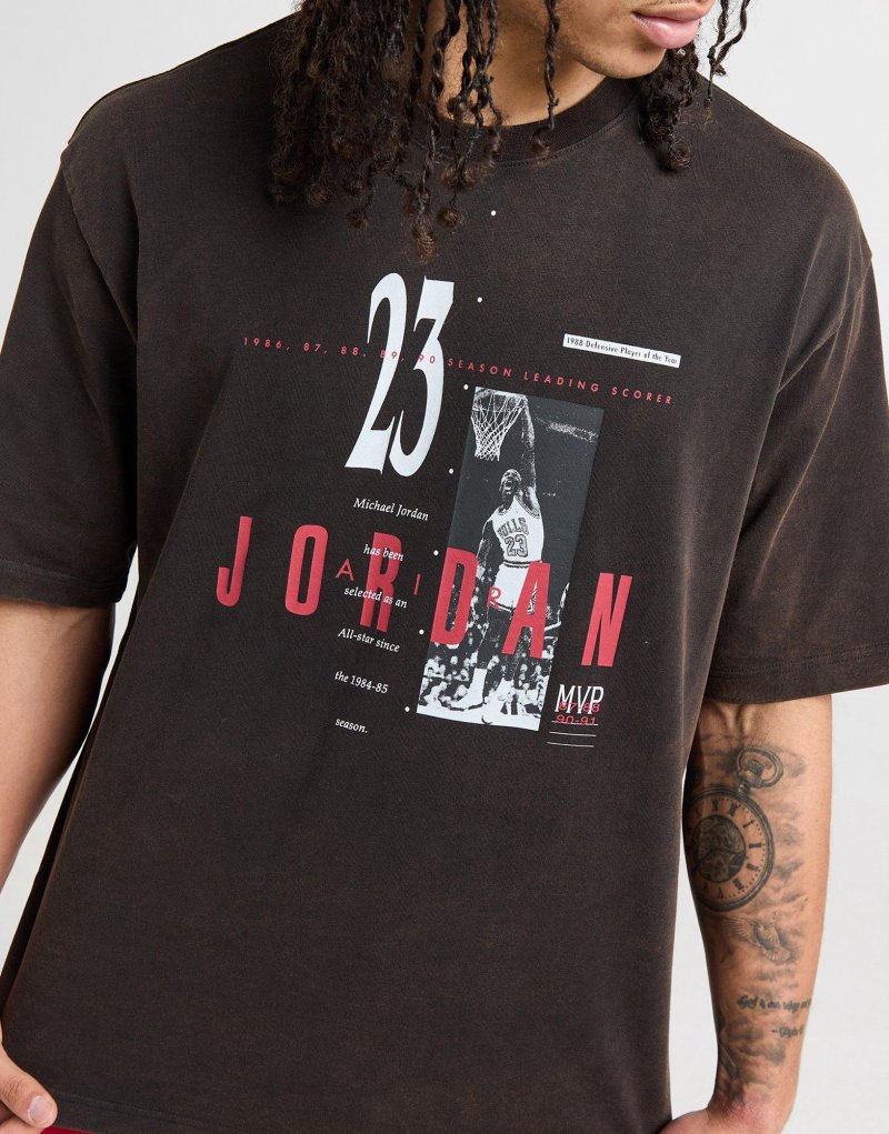 Dieses T-Shirt kommt frisch aus der Schatzkammer und bringt klassische Jordan Grafiken zurück. Schwere Baumwolle sorgt für ein strukturiertes Tragegefühl und die durchgehende Waschung verleiht dir einen eingetragenen Vintage-Look.
