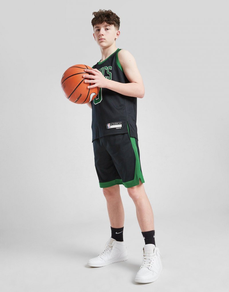 Repräsentiere die Farben deines Teams mit diesen Boston Celtics Shorts für Junioren von Jordan. Diese Shorts in Schwarz und Grün sind aus leichtem Polyester gefertigt und bieten auf und neben dem Platz höchsten Komfort. Sie verfügen über einen elastischen Bund mit Kordelzug, sodass du die Passform anpassen kannst, während die schweißableitende Dri-FIT-Technologie für Kühlung sorgt. Sie haben Seitentaschen zur Aufbewahrung und sind mit dem charakteristischen Jumpman-Logo versehen. Maschinenwaschbar.