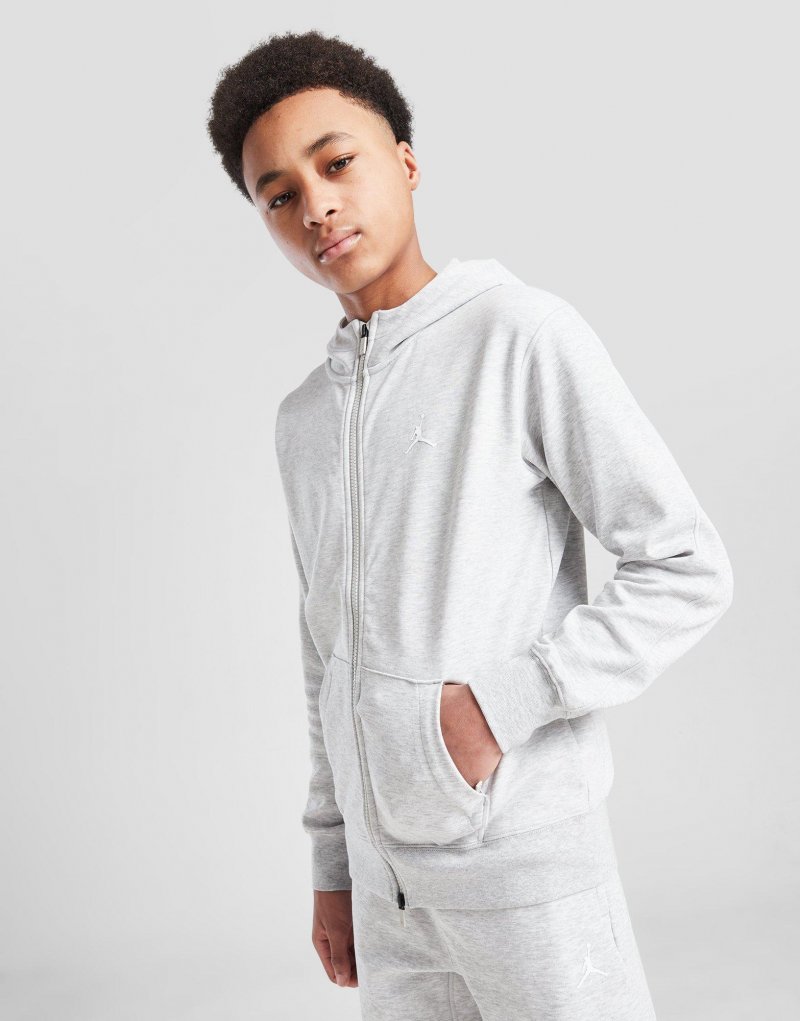 Mit dem Dri-FIT Sports Full Zip Kinder-Hoodie von Jordan bringst du deinen Street-Look auf ein neues Level. Dieser Standard-Fit Hoodie in Grau besteht aus weichem, leichtem Baumwoll-Fleece und bietet absoluten Komfort. Er ist mit der Dri-FIT-Technologie ausgestattet, um Schweiß abzuleiten, während der durchgehende Reißverschluss und die feste Kapuze einen individuellen Look ermöglichen. Außerdem sorgen die elastischen, gerippten Bündchen für eine stabile Passform und die geteilte Kängurutasche an der Vorderseite ermöglicht eine einfache Aufbewahrung. Das ikonische Jumpman-Logo von Jordan befindet sich auf der Brust. Waschmaschinengeeignet.