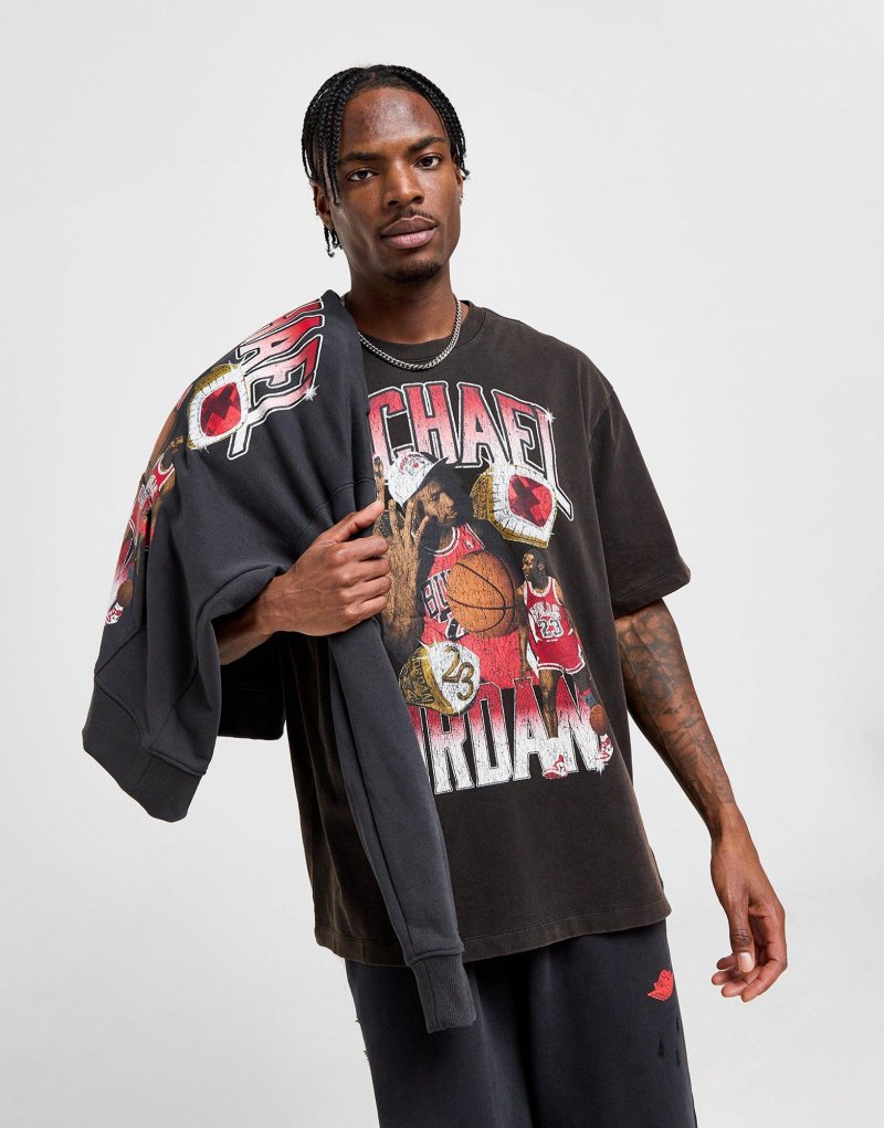 Zeigen Sie Ihre Liebe für den GOAT mit diesem Championship-T-Shirt für Herren von Jordan. Dieses locker sitzende T-Shirt in Schwarz ist aus weichem Baumwollstoff gefertigt und bietet höchsten Tragekomfort. Es hat kurze Ärmel mit geripptem Rundhalsausschnitt und überschnittene Schultern für mehr Platz. Abgerundet durch das grafische MJ-Branding auf der Brust. Maschinenwaschbar | Unser Model ist 1,83 m groß, hat einen Brustumfang von 91 cm und trägt Größe M.
