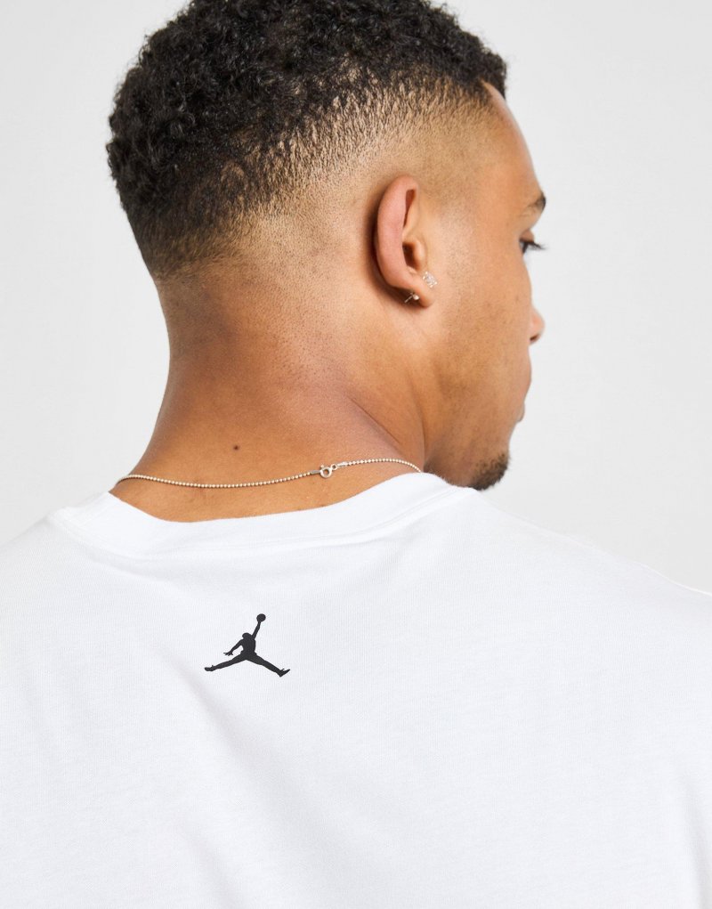 Repräsentiere den Besten der Besten mit dem G.O.A.T. Herren-T-Shirt von Jordan. Dieses Standard-Fit Oberteil in Weiß besteht aus weicher, mittelschwerer Baumwolle und bietet ein strukturiertes, bequemes Tragegefühl. Es verfügt über einen gerippten Rundhalsausschnitt und kurze Ärmel, während das Jumpman-Logo im Nacken und ein Ziegen-Motiv auf der Brust platziert ist. Waschmaschinengeeignet. Unser Model ist 1,85 m groß, hat einen Brustumfang von 99 cm und trägt Größe M.
