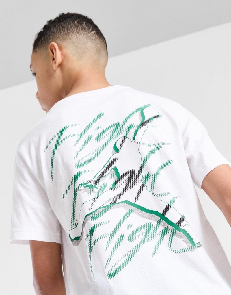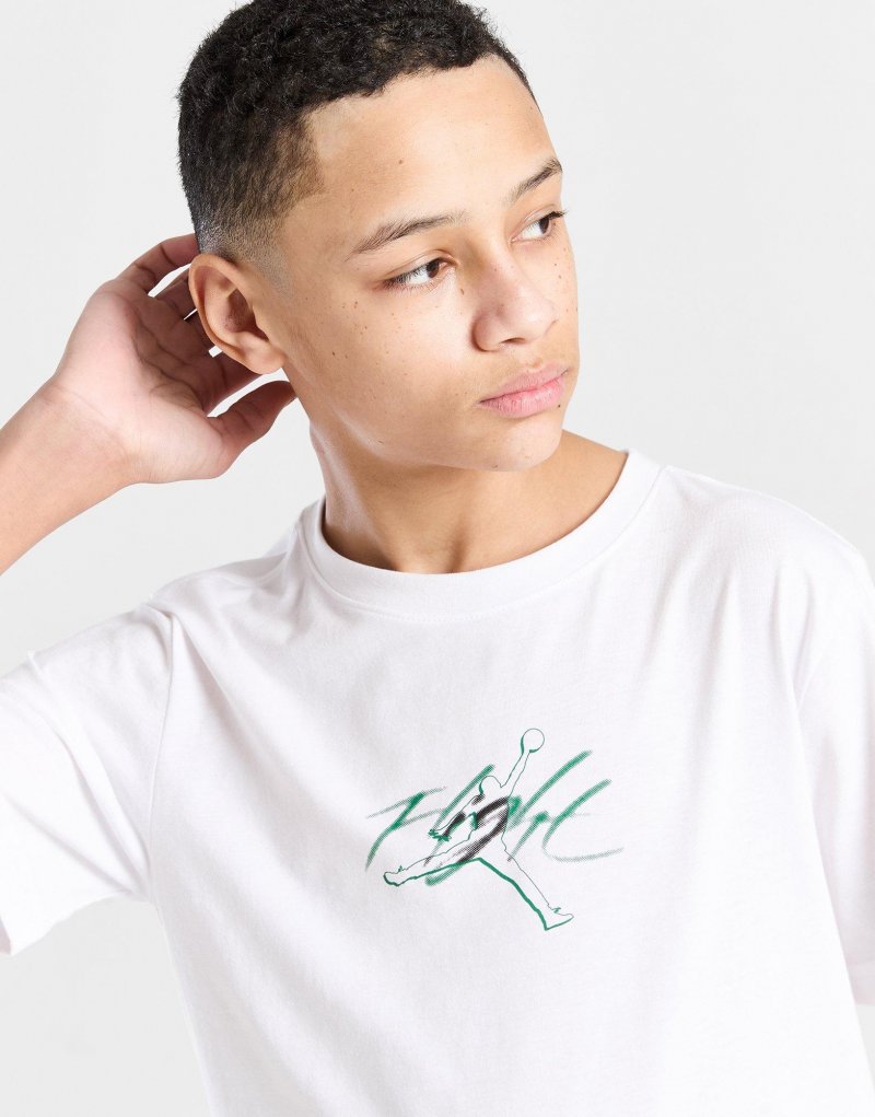 Erfrischen Sie die Basics mit einem vom Court inspirierten Stil in diesem Jumpman Flight Haze T-Shirt für Junioren von Jordan. Dieses locker sitzende Oberteil in Weiß hat einen leicht verlängerten Saum, einen gerippten Kragen und kurze Ärmel. Es ist aus weicher Baumwolle geschnitten, die sich leicht und bequem anfühlt. Abgerundet mit gestapelten Flight Jumpman-Grafiken auf Brust und Rücken. Maschinenwaschbar.