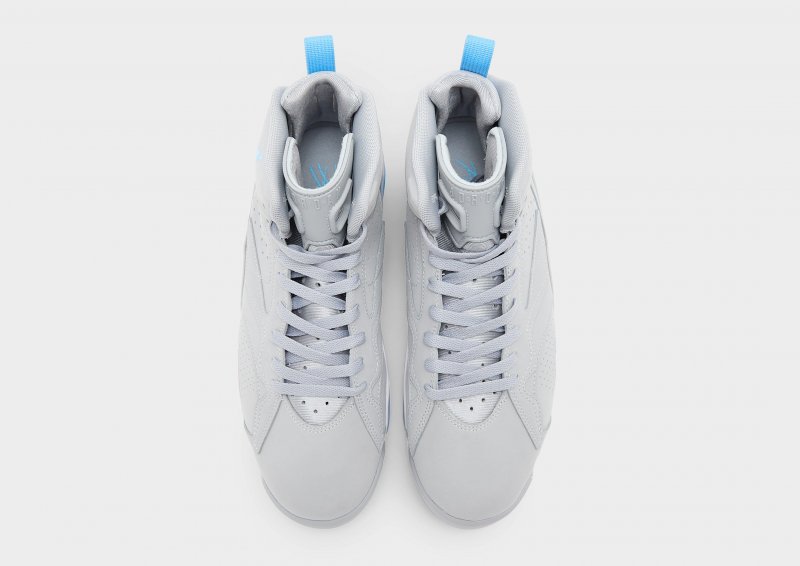 Das Obermaterial ist eine Kombination aus Elementen des AJ6 und AJ7: Die Zungenoberseite und der modifizierte Überzug beziehen sich auf den AJ6, während das Halbschuhfutter dem AJ7 Tribut zollt.