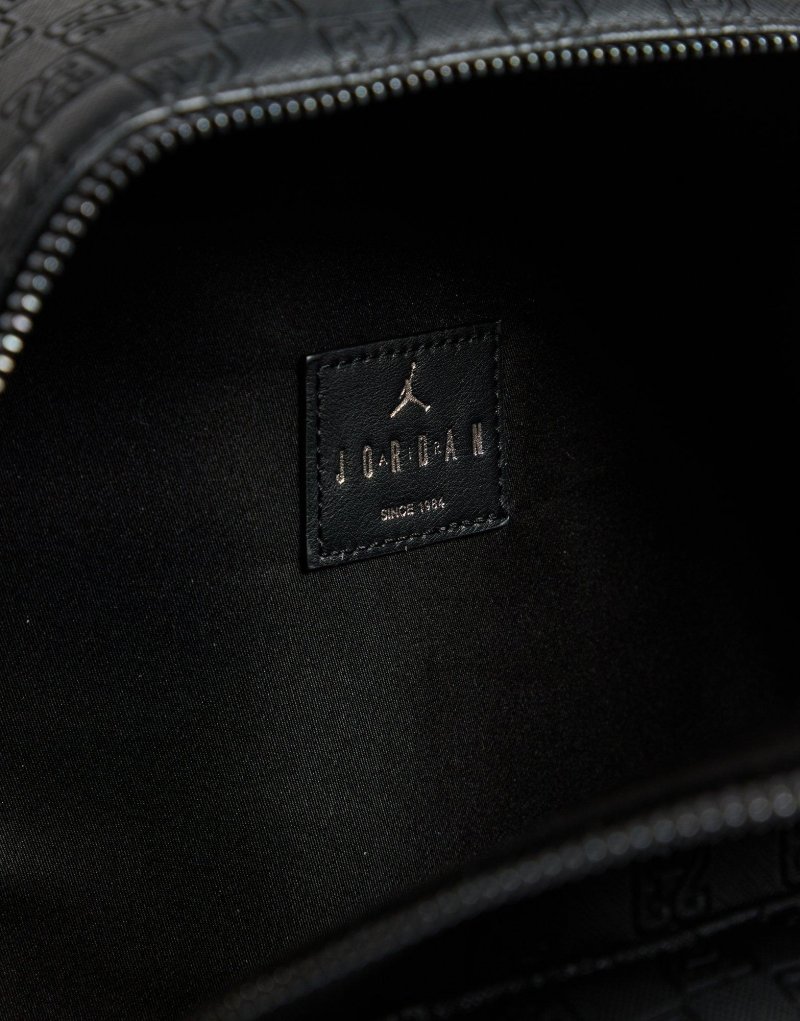 Mit dem Monogram Rucksack von Jordan hast du unterwegs alles Wichtige bei dir. Diese schwarze Tasche ist aus strapazierfähigem Kunstledergewebe gefertigt und eignet sich für eine dauerhafte Nutzung. Er verfügt über ein geräumiges Hauptfach mit Reißverschluss und Fächer, in denen du deine Sachen verstauen und organisieren kannst. Zudem besitzt der Rucksack verstellbare Schultergurte und eine Zugschlaufe für ein bequemes Tragen, während ein durchgehender Monogramm-Print und das klassische Jordan-Logo das Design abrunden. Für Fleckenentferner geeignet. Maße (HxBxT): 43 x 30 x 15 cm.