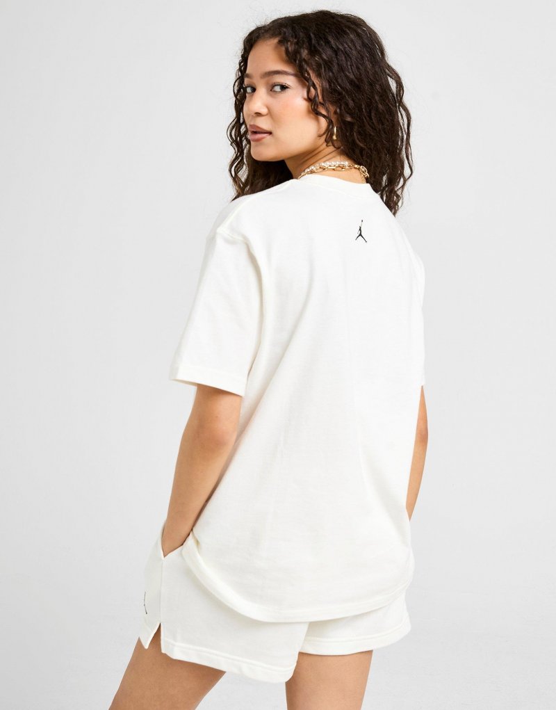 Mit diesem MVP Graphic T-Shirt für Damen von Jordan verleihst du deiner Garderobe einen Look, der vom Archiv inspiriert ist. Das T-Shirt in der Farbe Sail ist aus weichem, mittelschwerem Baumwollstoff gefertigt und bietet höchsten Tragekomfort. Der gerippte Rundhalsausschnitt und die kurzen Ärmel sorgen für ein angenehmes Tragegefühl. Der Jordan-Grafikprint auf der Brust rundet das Design ab. Maschinenwaschbar. | Unser Model ist 1,70 m groß und trägt Größe S.