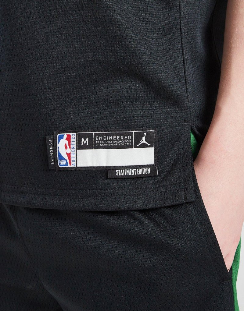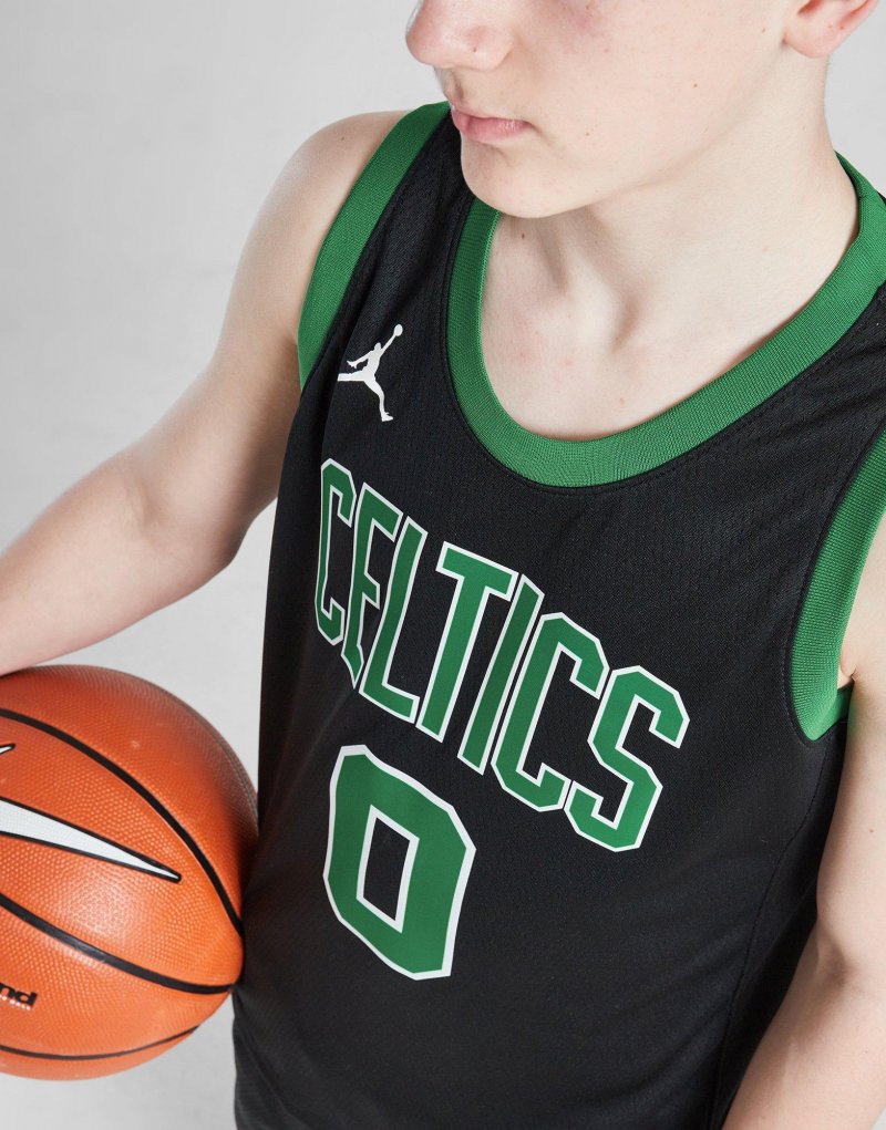 Mit dem Jordan NBA Boston Celtics Tatum #0 Trikot für Kinder repräsentierst du deinen Lieblingsspieler. Dieses Regular-Fit Jersey ist in Schwarz gehalten und mit grünen Akzenten versehen. Es besteht aus atmungsaktivem Poly-Knit-Material und bietet absoluten Komfort. Außerdem verfügt es über ein ärmelloses Design, einen Rundhalsausschnitt und dicke Bündchen für einen klassischen Look & Feel. Abgerundet wird das Design durch ein klassisches Jumpman-Logo und die Aufschrift Celtics Tatum #0 auf Vorder- und Rückseite. Waschmaschinengeeignet.