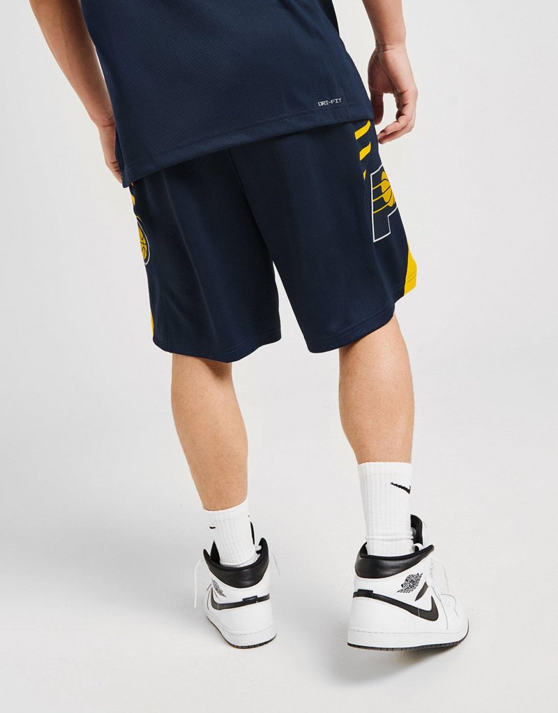 Repräsentiere dein Lieblingsteam mit den NBA Indiana Pacers Swingman Herren-Shorts von Jordan. Diese Shorts sind in den Farben College Navy und Amarillo gehalten und bestehen aus leichtem, atmungsaktivem Recycling-Polyester-Mesh, um kühlen Komfort zu gewährleisten. Zudem verfügen sie über einen elastischen Bund mit Kordelzug für eine entspannte Passform, während die integrierte Dri-FIT-Technologie den Schweiß ableitet. Die Seitentaschen bieten Platz für deine Utensilien und das klassische Pacers-Logo verleiht dem Design einen runden Abschluss. Waschmaschinengeeignet. Unser Model ist 1,83 m groß und trägt Größe M.