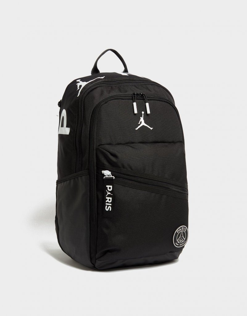 Mit diesem Paris Saint Germain Rucksack von Jordan bist du auch unterwegs ein echter Hingucker. Der Rucksack in Schwarz besteht aus glattem, strapazierfähigem Polyestergewebe. Er verfügt über ein geräumiges Hauptfach mit sicherem Reißverschluss und zwei Fronttaschen für Ordnung. Neben einer Seitentasche für eine Flasche bietet er verstellbare Schultergurte für einen individuellen Tragekomfort und eine gepolsterte Rückenpartie. Mit auffälligem Jordan- und PSG-Branding. Fleckenreinigung.
