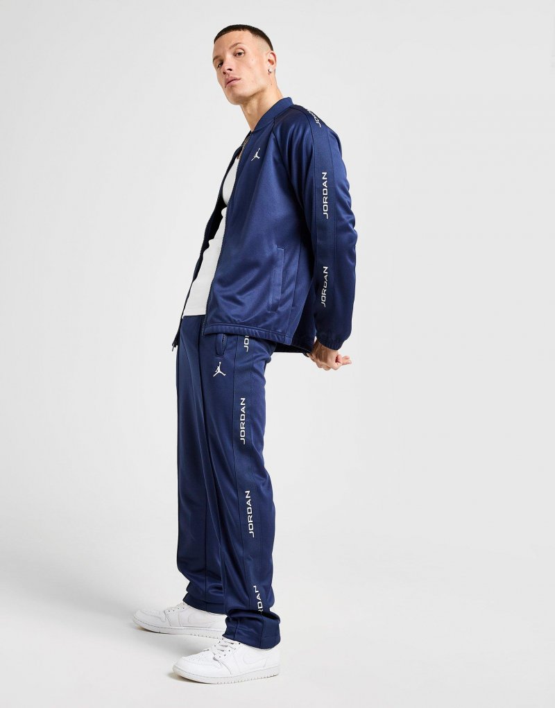 Setze auf den Jordan Style. Weiches Doppelstrickmaterial und ein elastischer Bund sorgen bei dieser entspannten Hose für Tragekomfort. Der Besatz mit Branding und Biesendetails erinnern an klassische Trainingsanzüge.