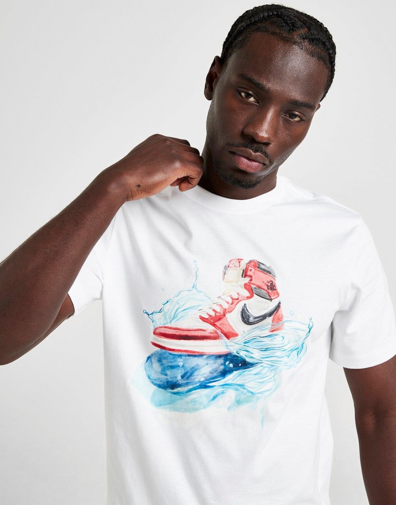 Bringen Sie Court-inspirierten Style in Ihren Alltag mit diesem Splash T-Shirt für Herren von Jordan. Das T-Shirt in Weiß mit normaler Passform besteht aus weichem, atmungsaktivem Baumwollstoff für dauerhaften Tragekomfort. Es hat einen gerippten Rundhalsausschnitt und kurze Ärmel für bequemes Tragen. Es ist mit einer Jordan-Grafik auf der Brust und dem Jumpman-Logo im Nacken versehen. Maschinenwaschbar. | Unser Model ist 1,85 m groß, hat einen Brustumfang von 91 cm und trägt Größe M.