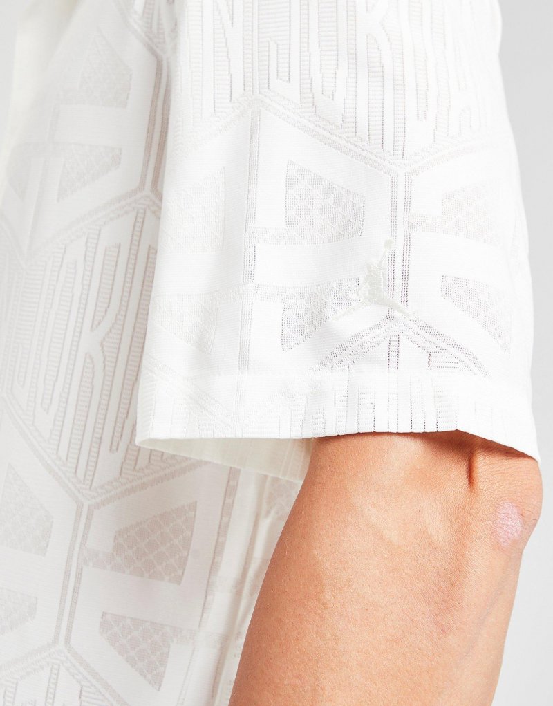 Peppen Sie Ihre Sommergarderobe mit diesem Statement-Shirt für Herren von Jordan auf. Das Hemd in Weiß ist aus leichtem Jacquard-Stoff gefertigt und bietet höchsten Tragekomfort. Der Kentkragen und die kurzen Ärmel sorgen für einen klassischen Schnitt, während der durchgehende Knopfverschluss für einen sicheren Sitz sorgt. Abgerundet wird das Design durchgängig mit traditionellen Jordan-Grafiken. Maschinenwaschbar. | Unser Model ist 1,83 m groß, hat einen Brustumfang von 99 cm und trägt Größe M.