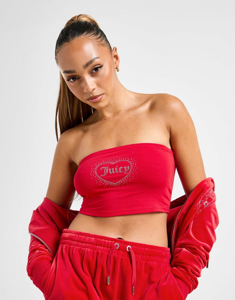 Bring mehr Bling-Bling in deinen Style mit dem Diamante Heart Logo Bandeau Top von Juicy Couture. Dieses JD-exklusive Bandeau in Rot besitzt einen klassischen Schnitt und besteht aus weichem, dehnbarem Baumwollstoff für figurbetonten Komfort. Abgerundet wird das Design durh ein strassbesetztes Herz-Logo ´von Juicy Couture auf der Brust. Waschmaschinengeeignet. Unser Model ist 1,73 m groß und trägt Größe S.