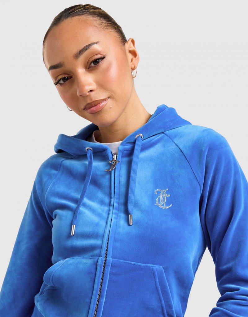 Bringen Sie etwas Retro-Energie in Ihren Look mit diesem Diamante JC Logo Hoodie für Damen von Juicy Couture. Dieser JD-exklusive Hoodie in der Farbe Blau ist aus weichem Veloursfleece für höchsten Tragekomfort gefertigt. Er verfügt über einen durchgehenden Reißverschluss und eine Kapuze für anpassbare Abdeckung, gerippte Säume für Formstabilität und Seitentaschen für Ihre wichtigsten Utensilien. Abgerundet mit dem JC-Diamant-Branding auf der Brust. Maschinenwaschbar | Unser Model ist 1,73 m groß und trägt Größe S.