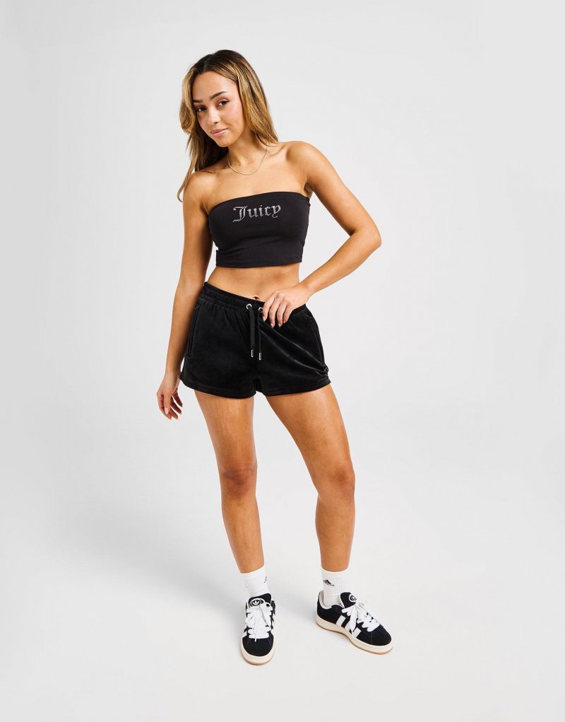 Bring frischen Wind in deinen Look mit dem Juicy Couture Diamante Logo Bandeau für Damen. Das exklusiv bei JD erhältliche Bandeau ist aus einem glatten Veloursstoff gefertigt, der für absoluten Komfort sorgt. Das Modell in der Farbe Schwarz ist mit dem Juicy Couture Schriftzug auf der Vorderseite versehen. Waschmaschinengeeignet. Unser Model ist 1,75 m groß und trägt Größe S.