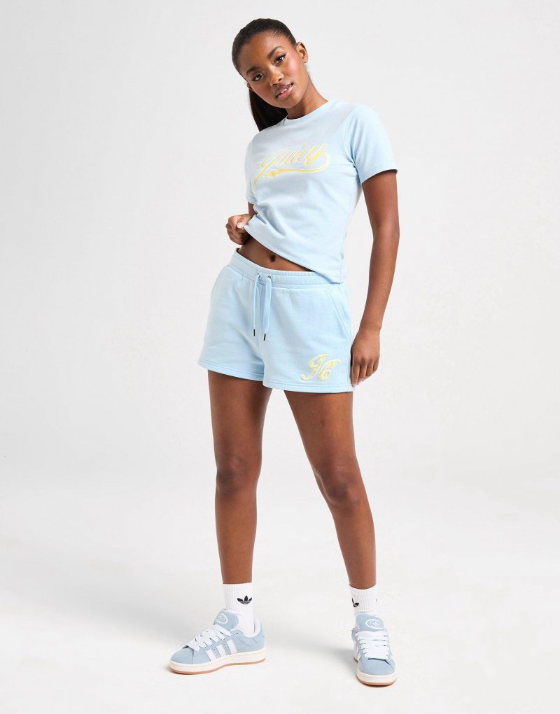 Exklusiv bei JD. Frischen Sie Ihre Sommergarderobe mit diesen Damen-Shorts mit Bouclé-Logo von Juicy Couture auf. Die JD-exklusiven Shorts in Blau sind aus weicher, leichter Baumwolle gefertigt und bieten höchsten Tragekomfort. Der elastische Bund mit Kordelzug sorgt für ein entspanntes Tragegefühl und die Seitentaschen bieten Platz für alles Wichtige. Abgerundet wird das Design durch das gelbe Juicy Couture Bouclé-Logo. Maschinenwaschbar. | Unser Model ist 1,70 m groß und trägt Größe S.