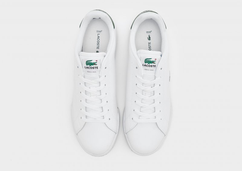 Bring neue Energie in deine Rotation mit den Carnaby Cupsole Herren-Sneakern von Lacoste. Diese weißen Schuhe besitzen ein Obermaterial aus Leder, um dir dauerhaften Tragekomfort zu bieten. Außerdem verfügen sie über einen farblich abgestimmten Schnürverschluss für sicheren Halt, während die Polsterung unter den Füßen ein geschmeidiges Laufgefühl sicherstellt. Das griffige Gummiprofil bietet erstklassige Traktion, und abgerundet wird das Design durch grüne Akzente und das typische Logo von Lacoste.