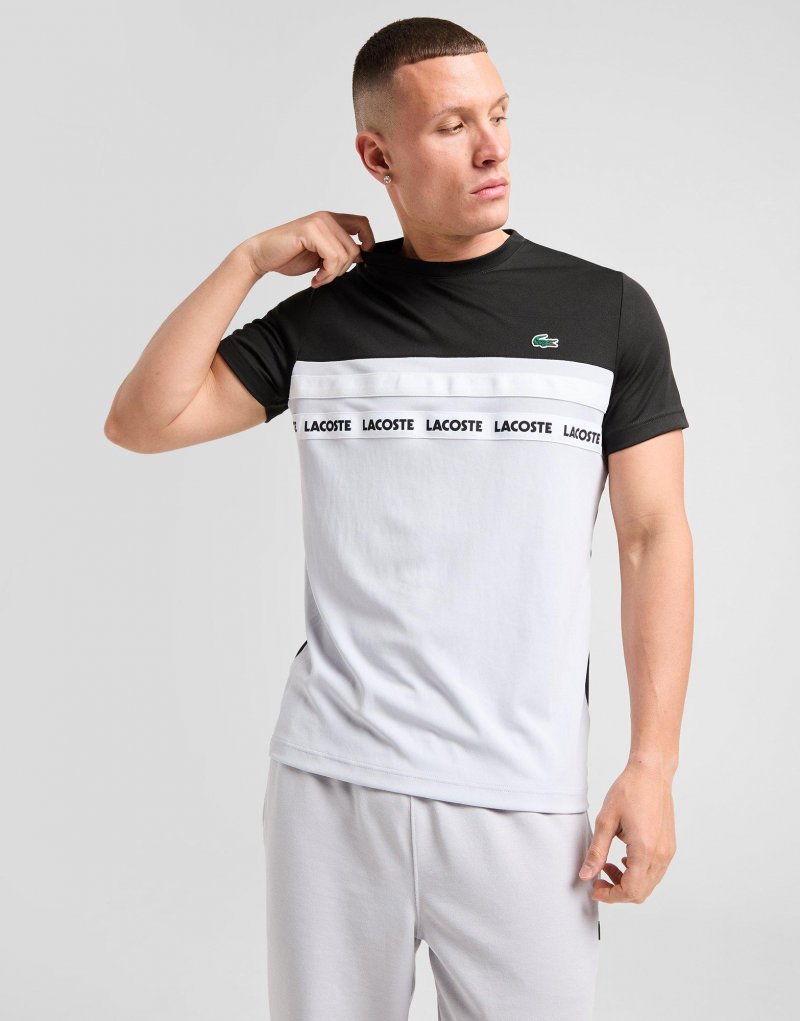 Bring ein neues Highlight in deine Garderobe mit dem Lacoste Colour Block Tape T-Shirt für Herren. Dieses Regular-Fit Obrteil ist in Schwarz und Grau gehalten und besteht aus weicher, leichter Baumwolle, um dir maximalen Komfort zu bieten. Zudem verfügt es über einen gerippten Rundhalsausschnitt für einen klassischen Look, während ein weißes Paneel auf der Brust mit einem wiederholten Lacoste-Logo versehen ist. Das ikonische Croc-Logo auf der Brust verleiht dem Design einen krönenden Abschluss. Waschmaschinengeeignet. Unser Model ist 1,83 m groß, hat einen Brustumfang von 99 cm und trägt Größe M.