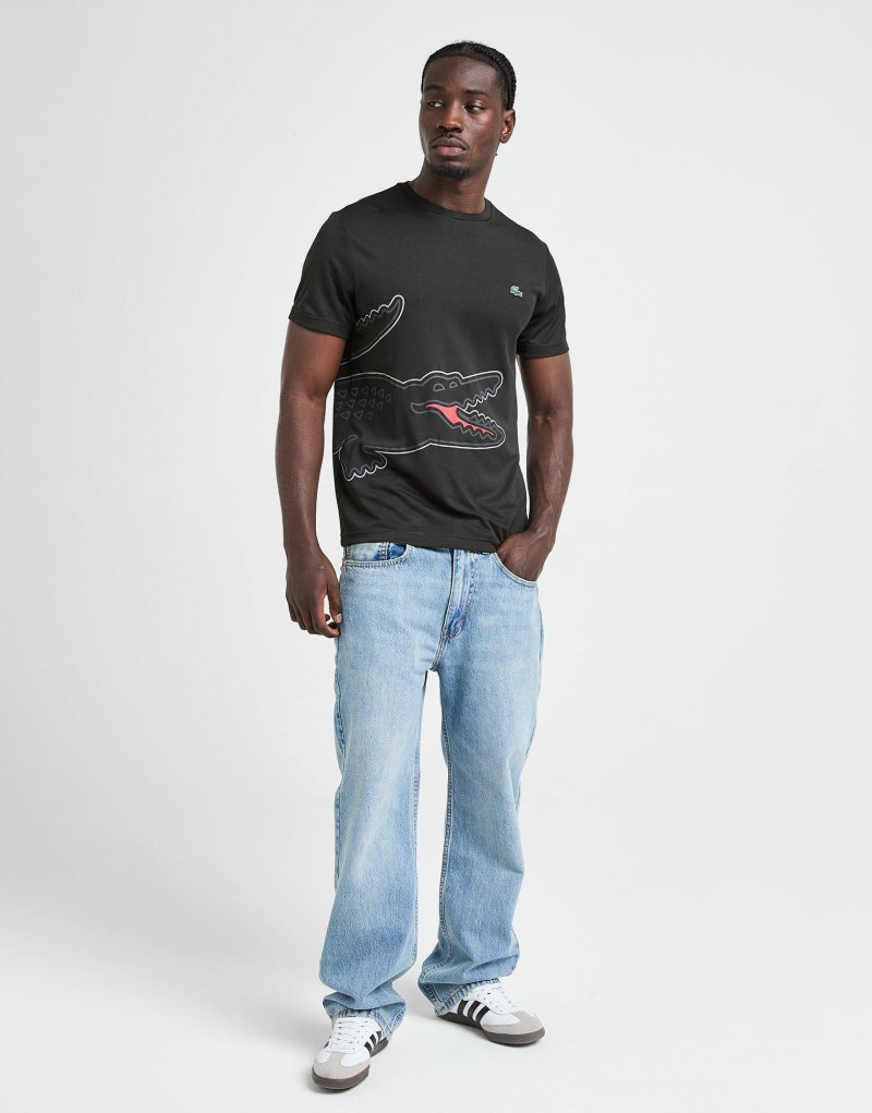 Verleihen Sie Ihrem Alltag mit diesem Herren-T-Shirt mit Kroko-Piqué von Lacoste einen Hauch von Premium. Das JD-exklusive T-Shirt in Schwarz ist aus weichem Baumwoll-Piqué gefertigt und bietet höchsten Tragekomfort. Es hat einen gerippten Rundhalsausschnitt und kurze Ärmel für bequemes Tragen. Der Grafikdruck und das Kroko-Logo auf der Brust runden das Design ab. Maschinenwaschbar.