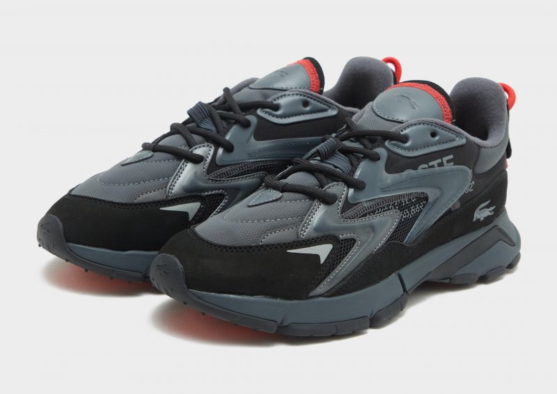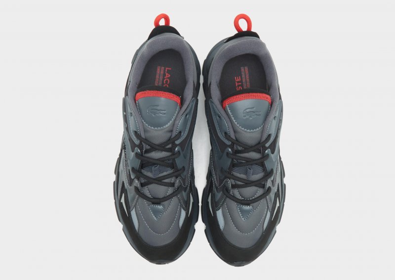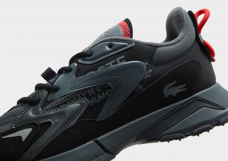 Mit diesen L003 Neo Tech-Sneakern für Herren von Lacoste können Sie Ihre Schuhkollektion auf ein neues Niveau heben. Diese exklusiven JD-Sneaker in Dunkelgrau mit roten Akzenten haben eine Mischung aus Canvas, Mesh und Leder im Obermaterial für langanhaltenden Tragekomfort. Sie verfügen über einen Schnürverschluss für einen sicheren Sitz und eine Fersenlasche für einfaches An- und Ausziehen. Unter dem Fuß bietet die schwammartige Schaumstoff-Mittelsohle eine reaktionsschnelle Dämpfung, während die Gummilaufsohle für absolute Traktion sorgt. Abgerundet wird das Ganze durchgängig mit dem Lacoste-Branding.