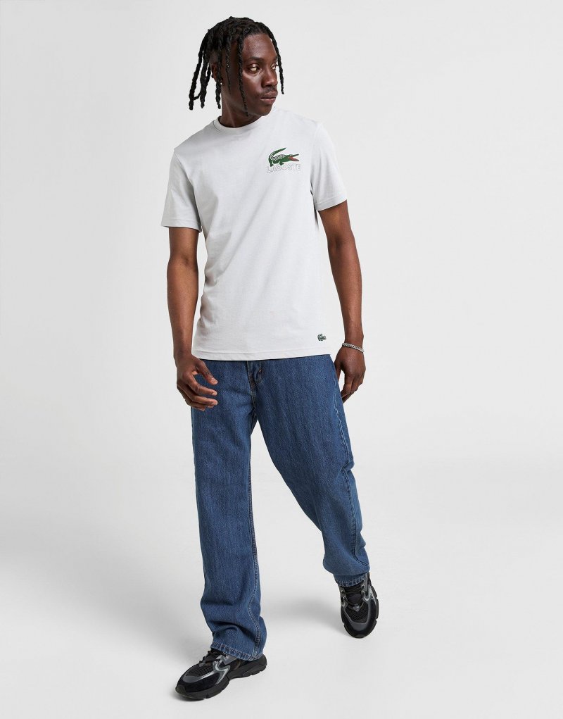 Verleihen Sie Ihrer Garderobe mit diesem Herren-T-Shirt mit Back Print Repeat von Lacoste einen Hauch von Premium-Vibes. Dieses JD-exklusive T-Shirt in Grau ist aus weicher Baumwolle gefertigt und bietet dauerhaften Tragekomfort. Es hat einen gerippten Rundhalsausschnitt und kurze Ärmel für bequemes Tragen. Es ist mit einem Krokodil-Logo über dem Kopf und einem Lacoste-Grafik-Branding auf Brust und Rücken versehen. Maschinenwaschbar. | Unser Model ist 1,83 m groß, hat einen Brustumfang von 89 cm und trägt Größe M.