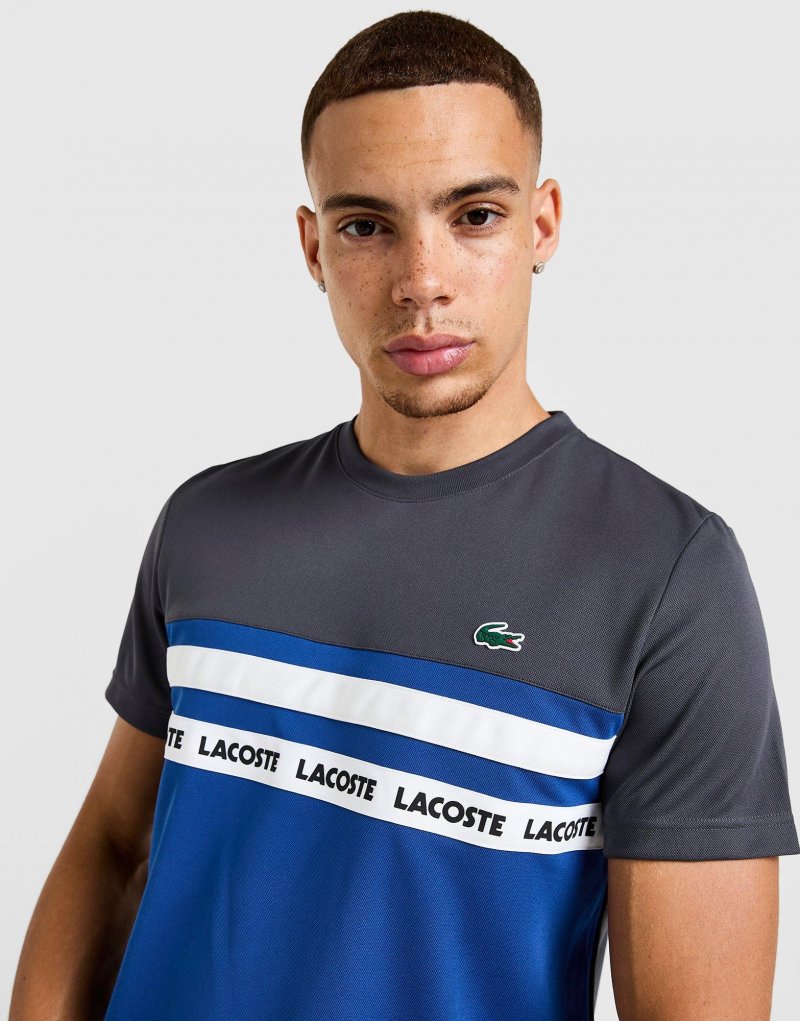 Zeit für dein Style-Upgrade mit dem Lacoste Tape Colour Block T-Shirt für Herren. Dieses Oberteil ist im Farbblock-Design aus Grau, Blau und Weiß gehalten und besteht aus leichtem, atmungsaktivem Polyester mit schweißableitender ULTRA.DRY-Technologie. Außerdem verfügt es über einen Rundhalsausschnitt und kurze Ärmel für einen klassischen Look. Abgerundet wird das Ganze durch das wiederholte Lacoste-Logo auf der Vorderseite und das ikonische Krokodil-Logo auf der Brust. Waschmaschinengeeignet. Unser Model ist 1,84 m groß, hat einen Brustumfang von 97 cm und trägt Größe M.
