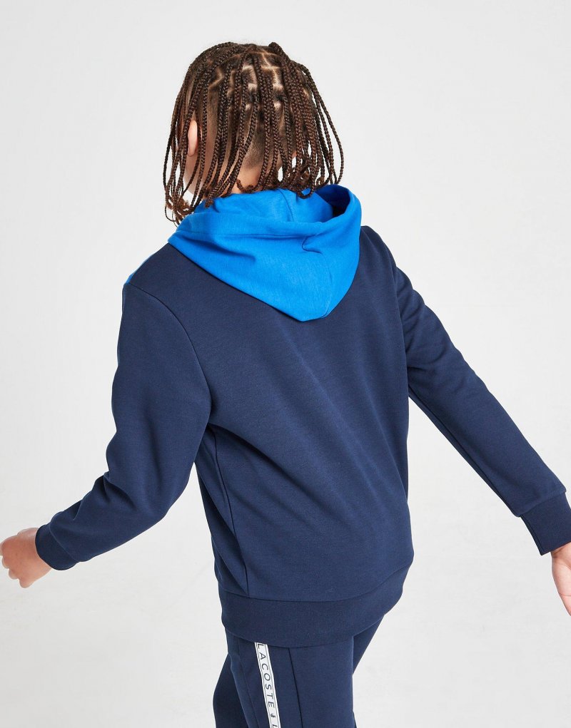 Mit diesem Tape Zip Hoodie für Junioren von Lacoste trägst du einen JD-exklusiven Look. In einem Farbblockdesign in Marineblau und Blau ist dieser durchgehende Reißverschluss aus glattem Polyester-Strickgewebe für entspannten Tragekomfort gefertigt. Mit gerippten Säumen, die die Silhouette formen, ist er mit einem aufgeklebten Branding in einem weißen Feld und dem ikonischen Krokodil-Abzeichen darüber versehen. Maschinenwaschbar.