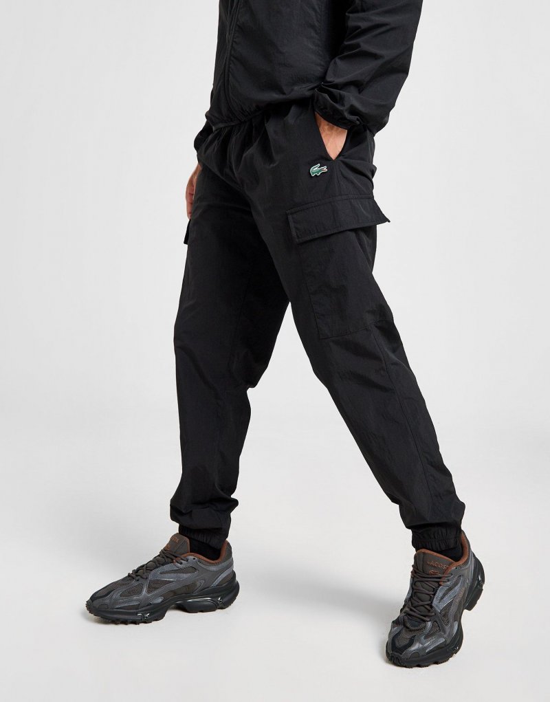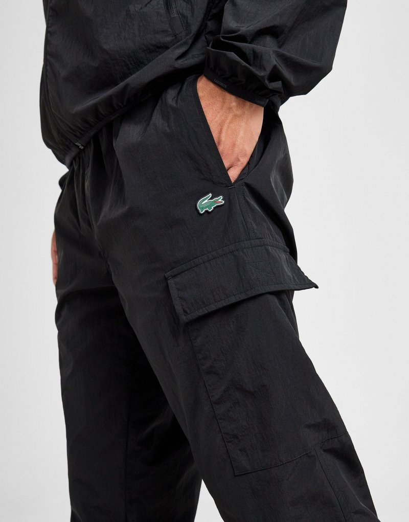 Verleihe deinem Streetstyle mit der Lacoste Woven Cargohose für Herren einen Premium-Touch. Die geräumige Trainingshose in Schwarz besteht aus leichtem und atmungsaktivem Webstoff. Sie verfügt über elastische Bündchen an den Beinenden und einen verstellbaren Bund für die perfekte Passform. Offene Seiten- und Cargotaschen sowie das kultige Krokodilabzeichen verleihen dem Design einen runden Abschluss. Waschmaschinengeeignet. Unser Model ist 1,83 m groß und trägt Größe M.